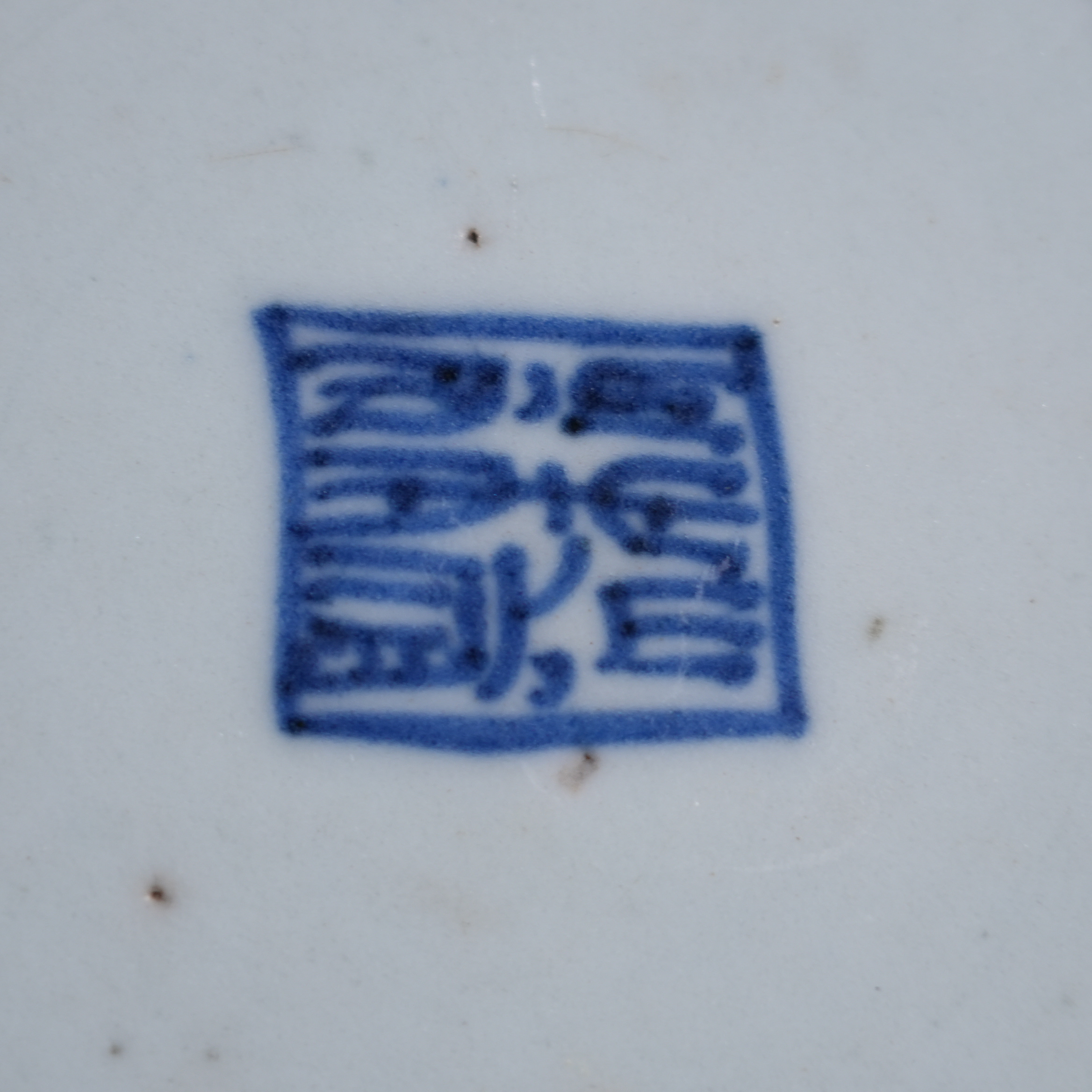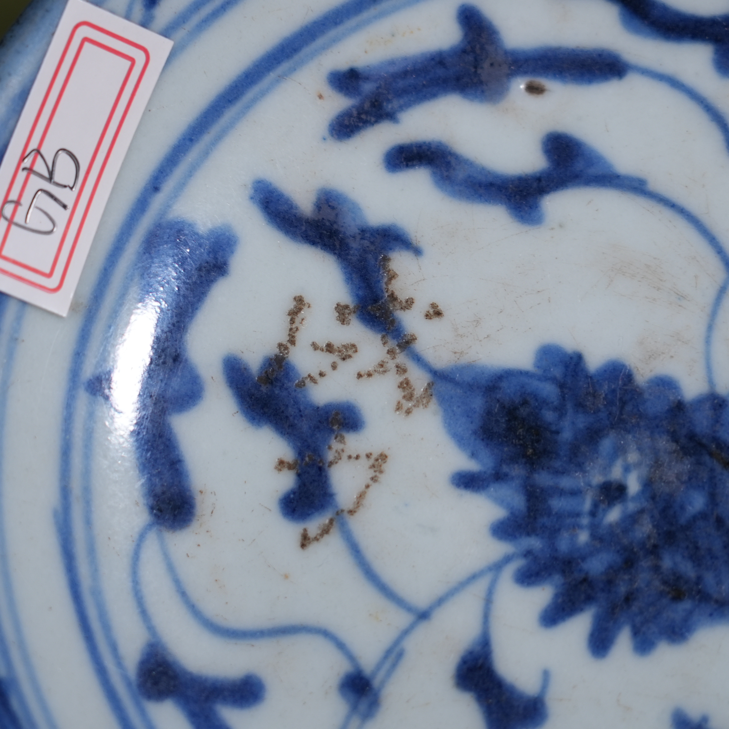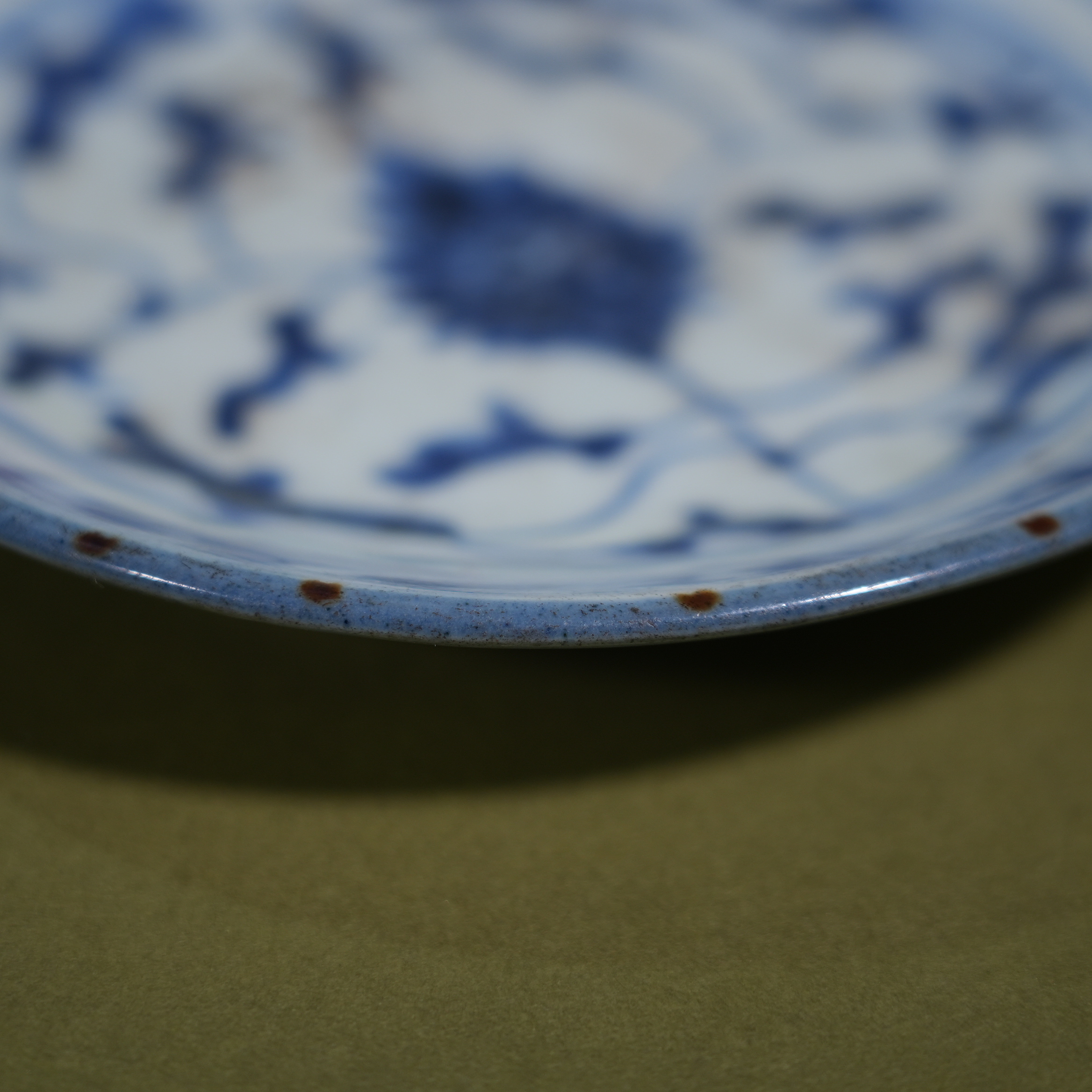 Ancient Chinese Blue and White Porcelain Dish with Interlocking Floral Motif