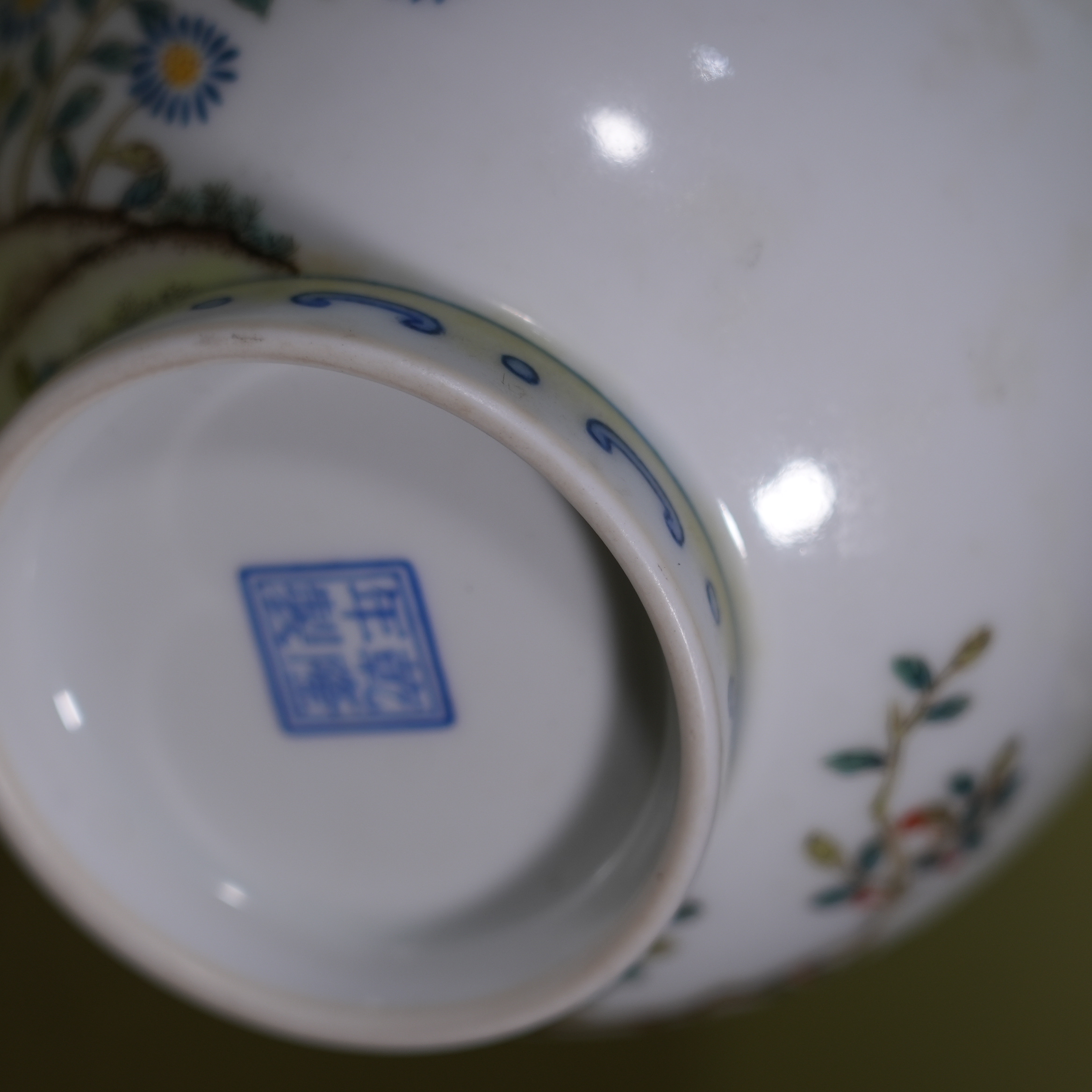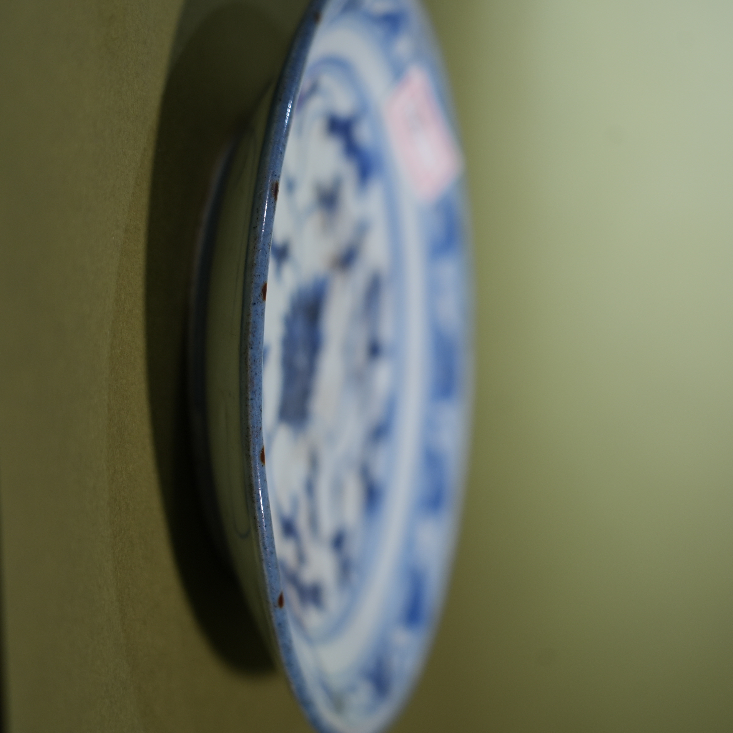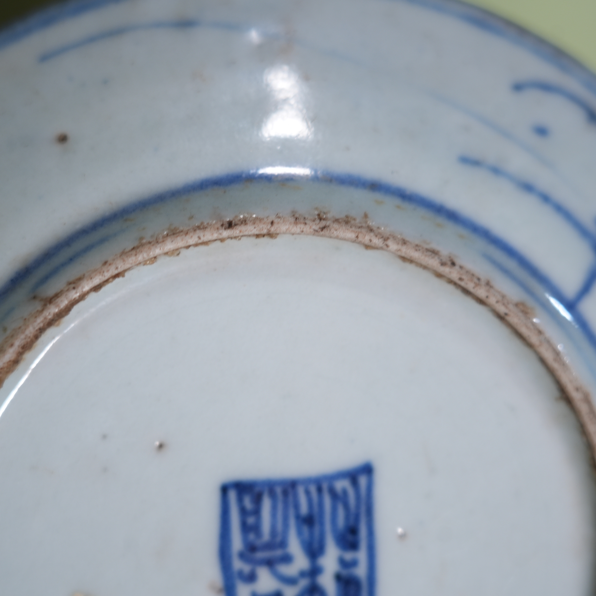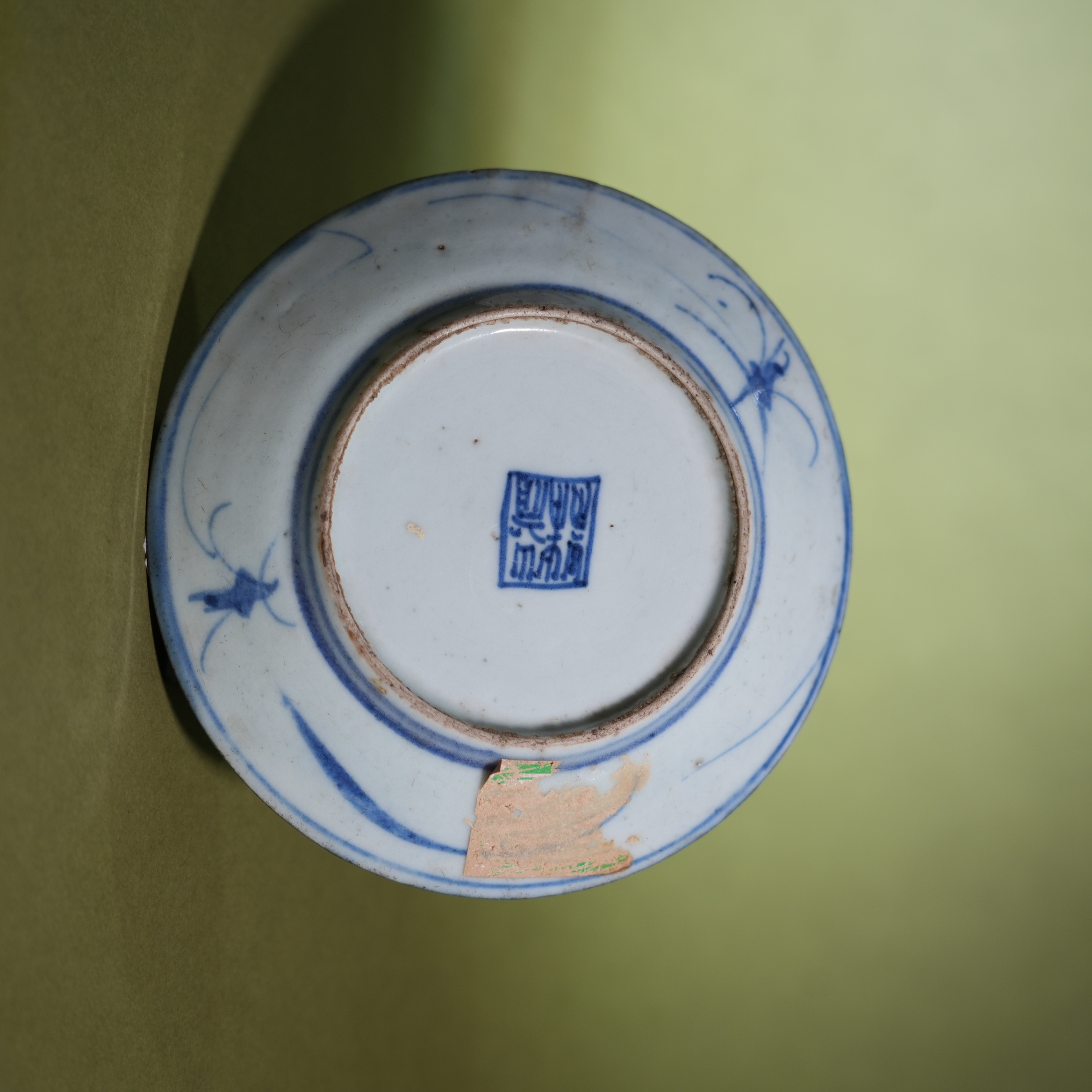 Ancient Chinese Blue and White Porcelain Dish with Interlocking Floral Motif