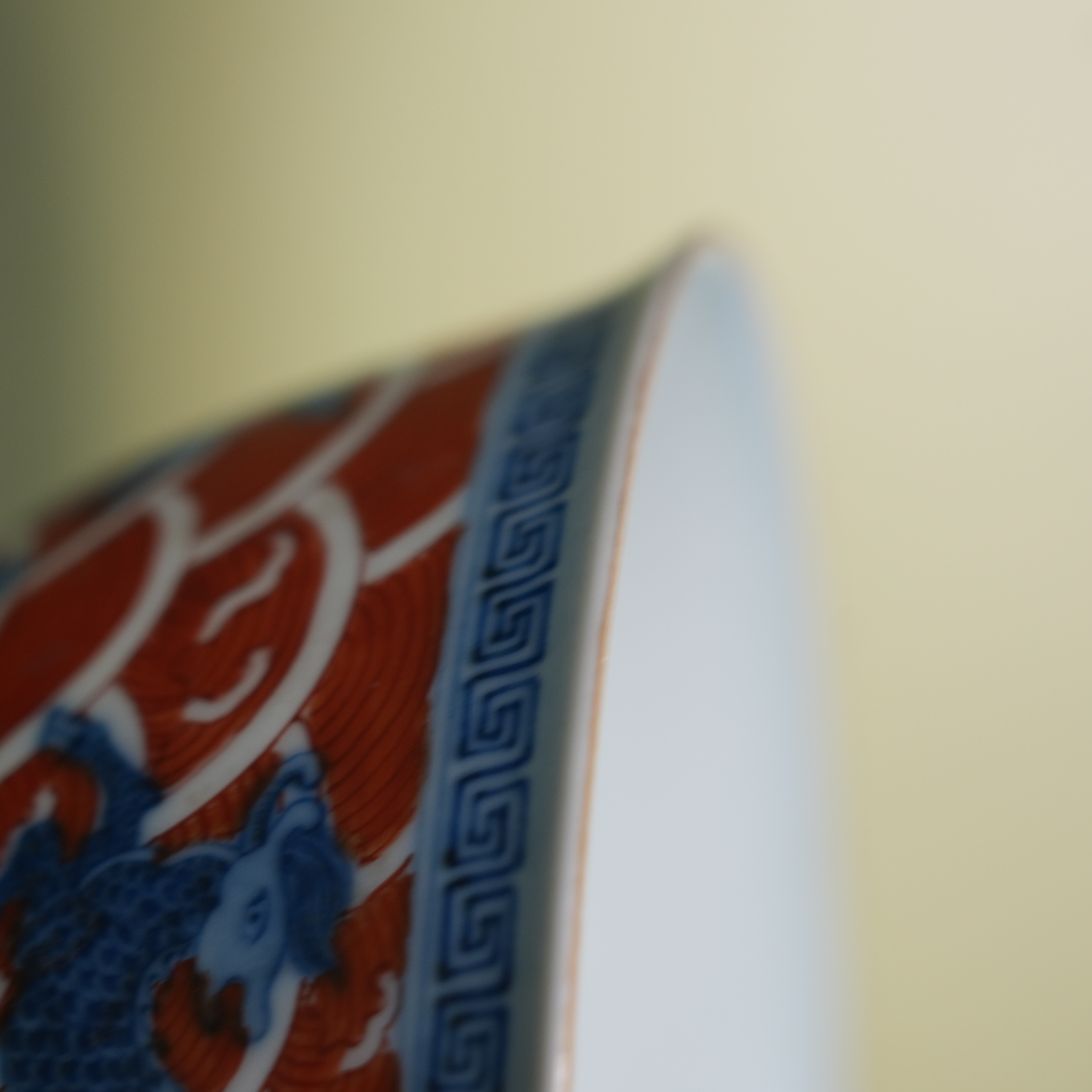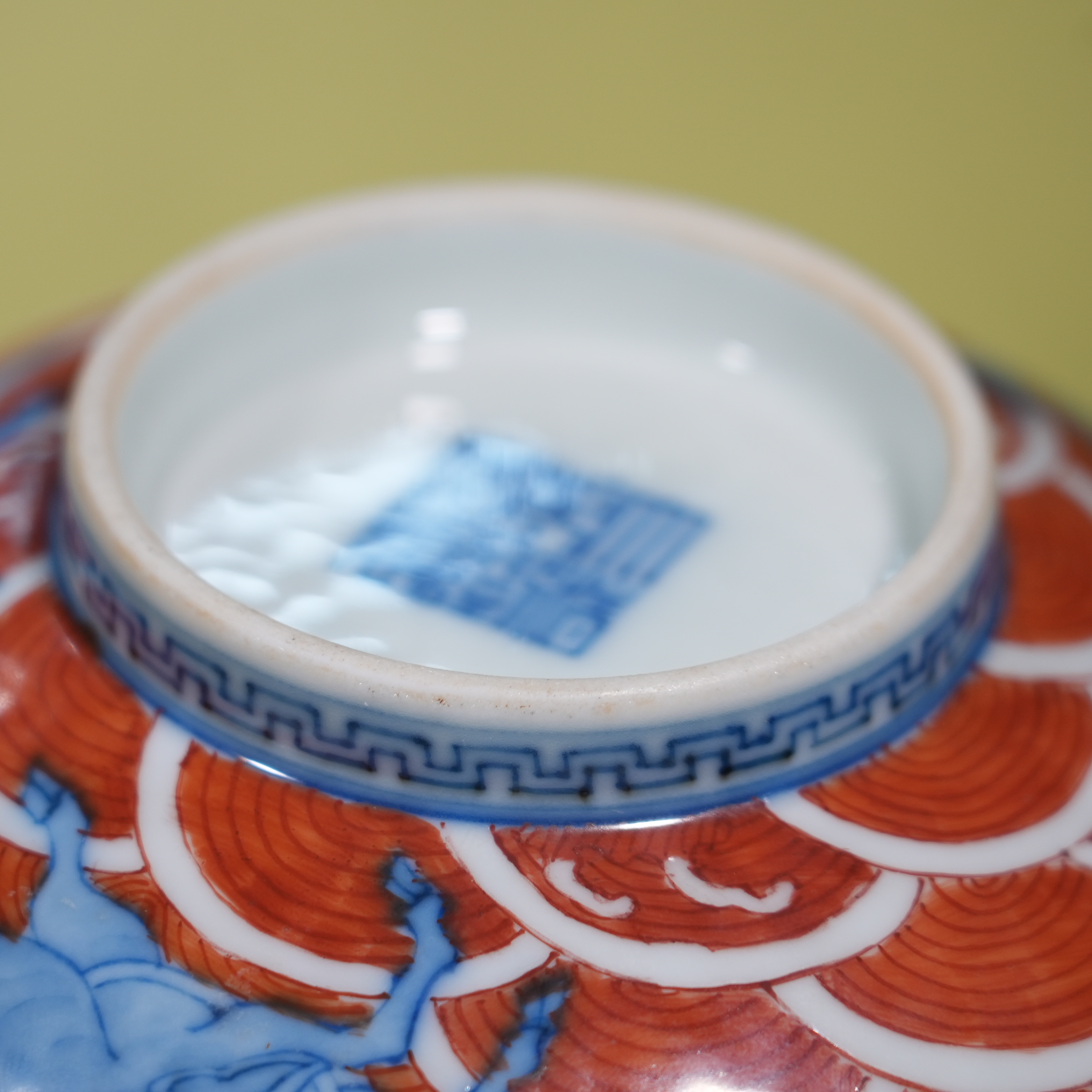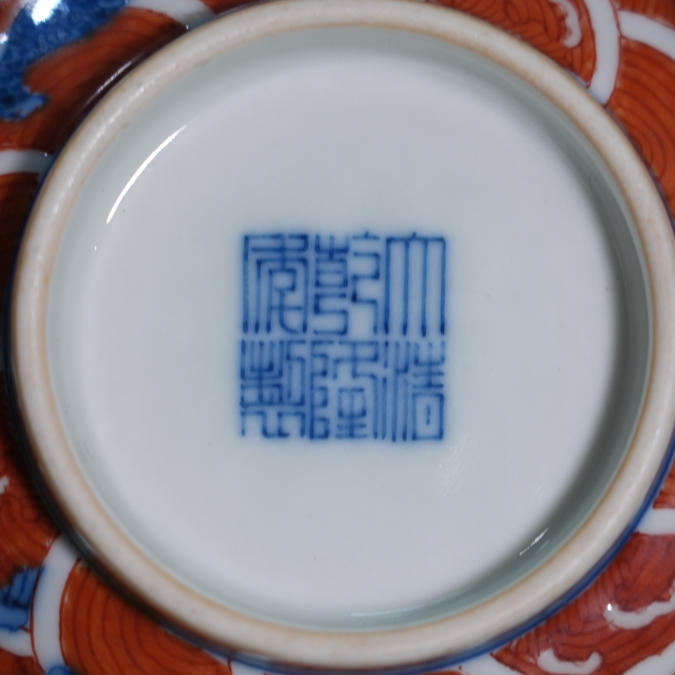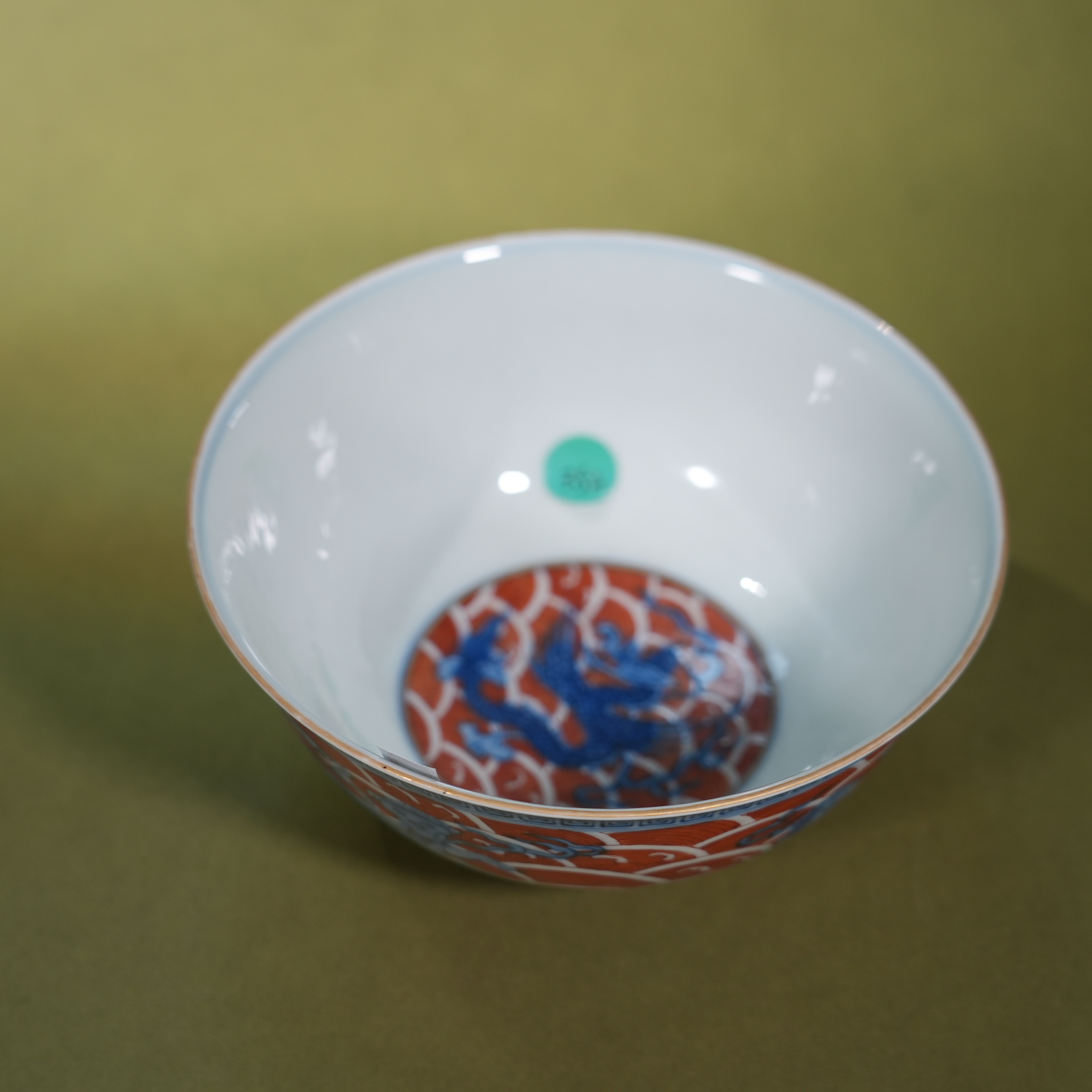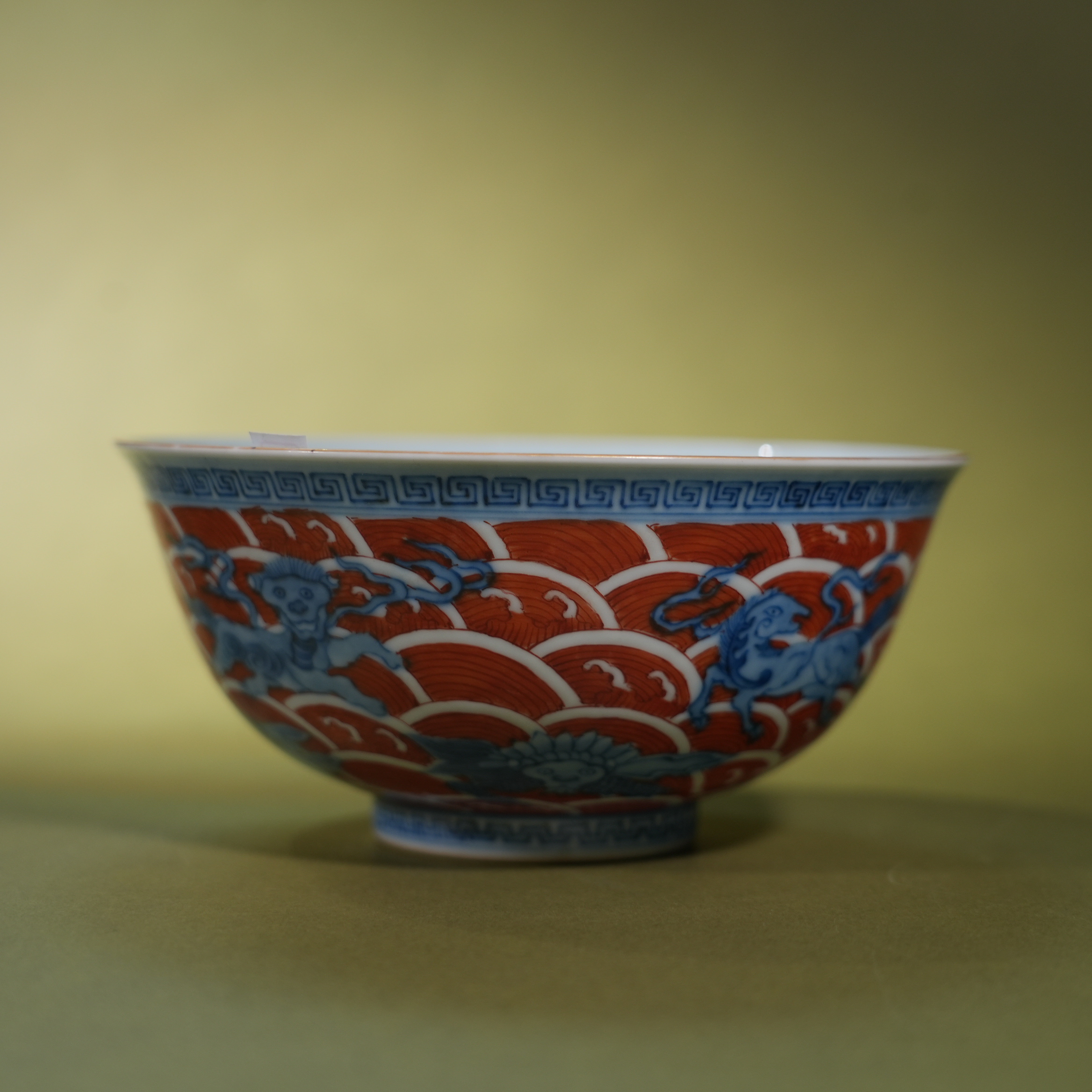 Ancient Chinese Underglaze Blue & Iron Red Sea Beast Porcelain Bowl
