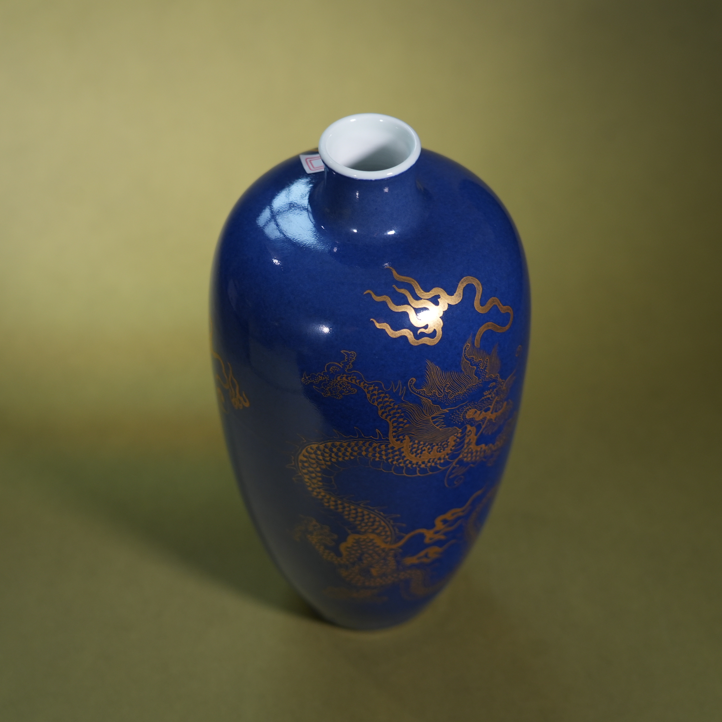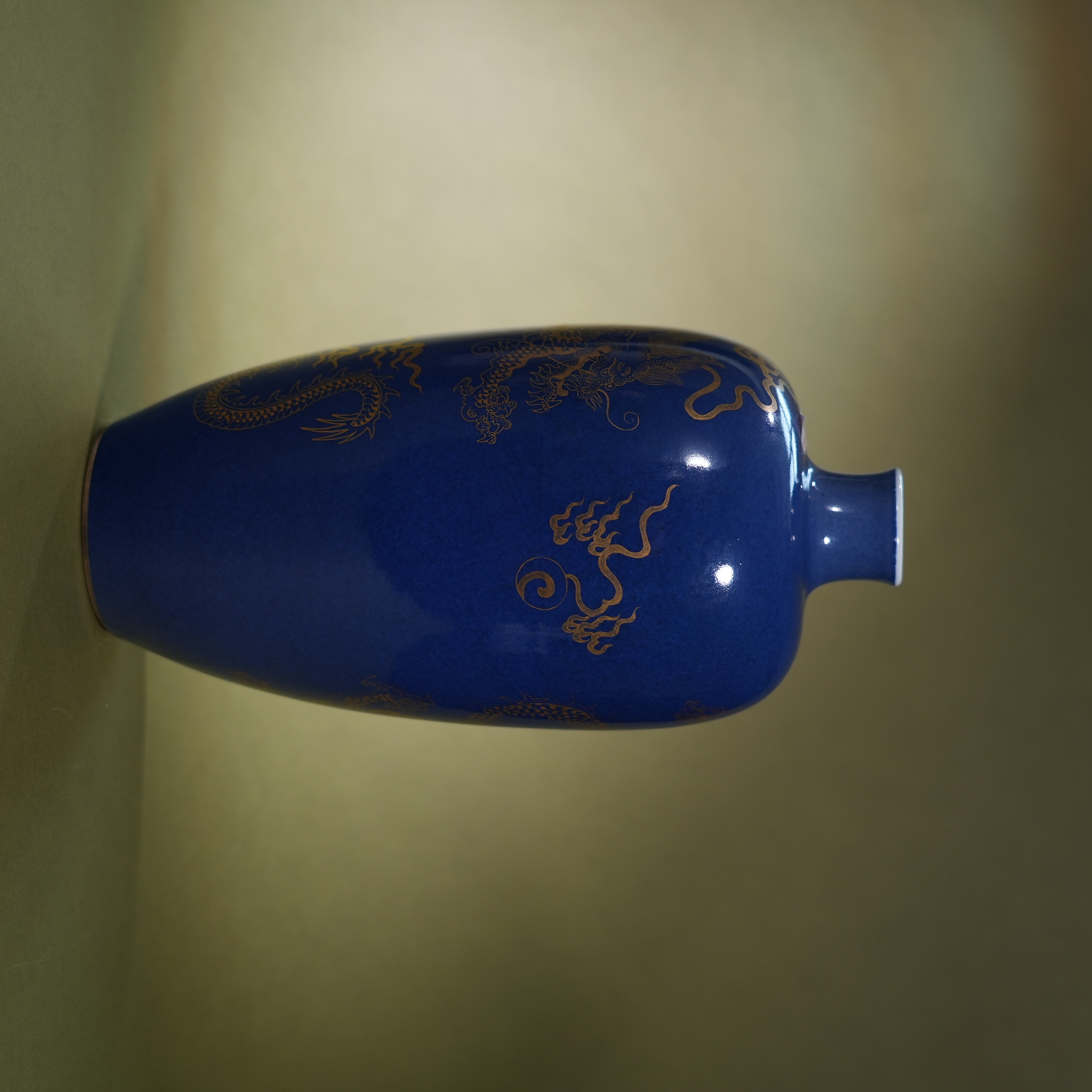 Ancient Chinese Powder Blue Glaze Gilded Dragon Porcelain Vase