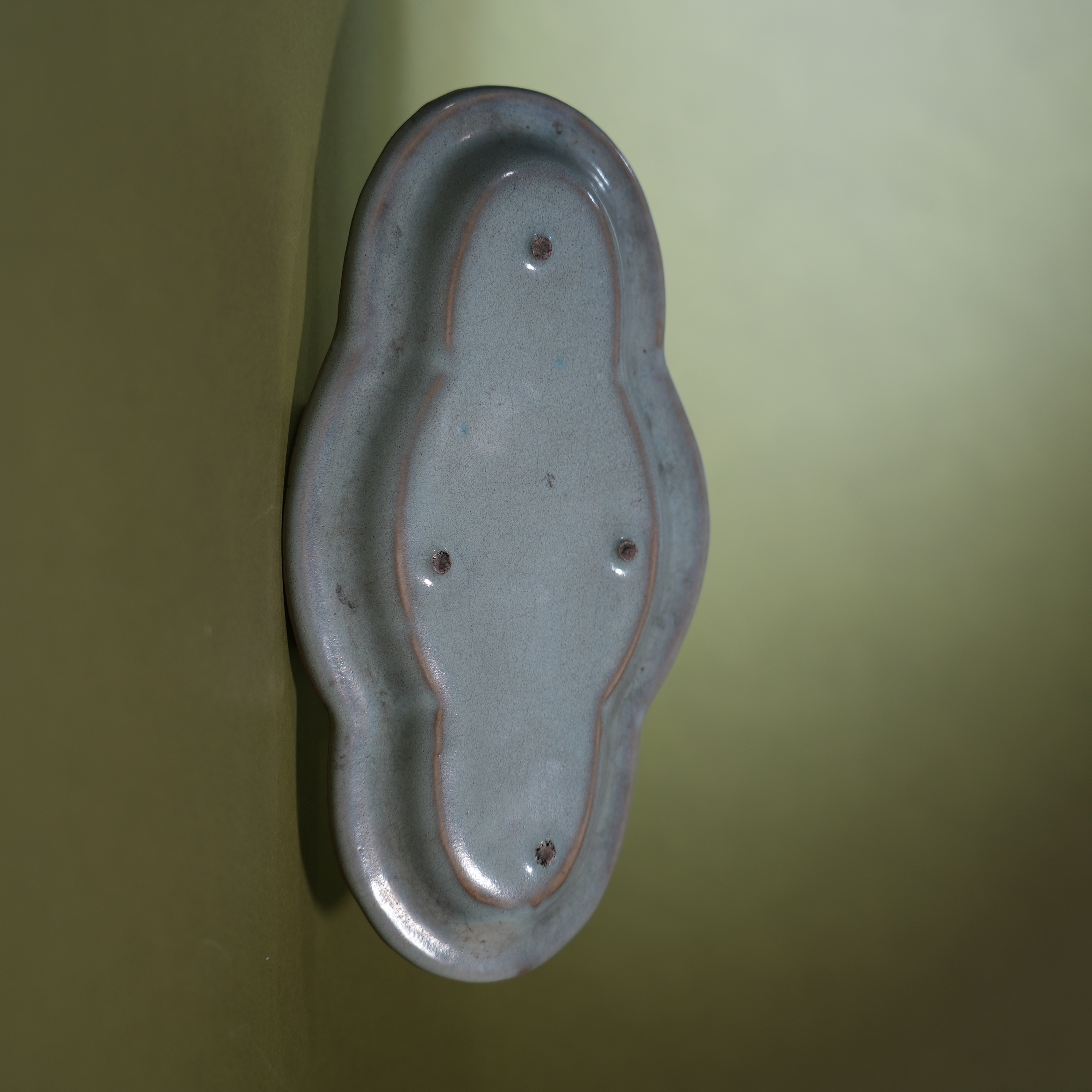 Antique Chinese Jun Kiln Celadon Glaze Oblong Flower-rimmed Plate