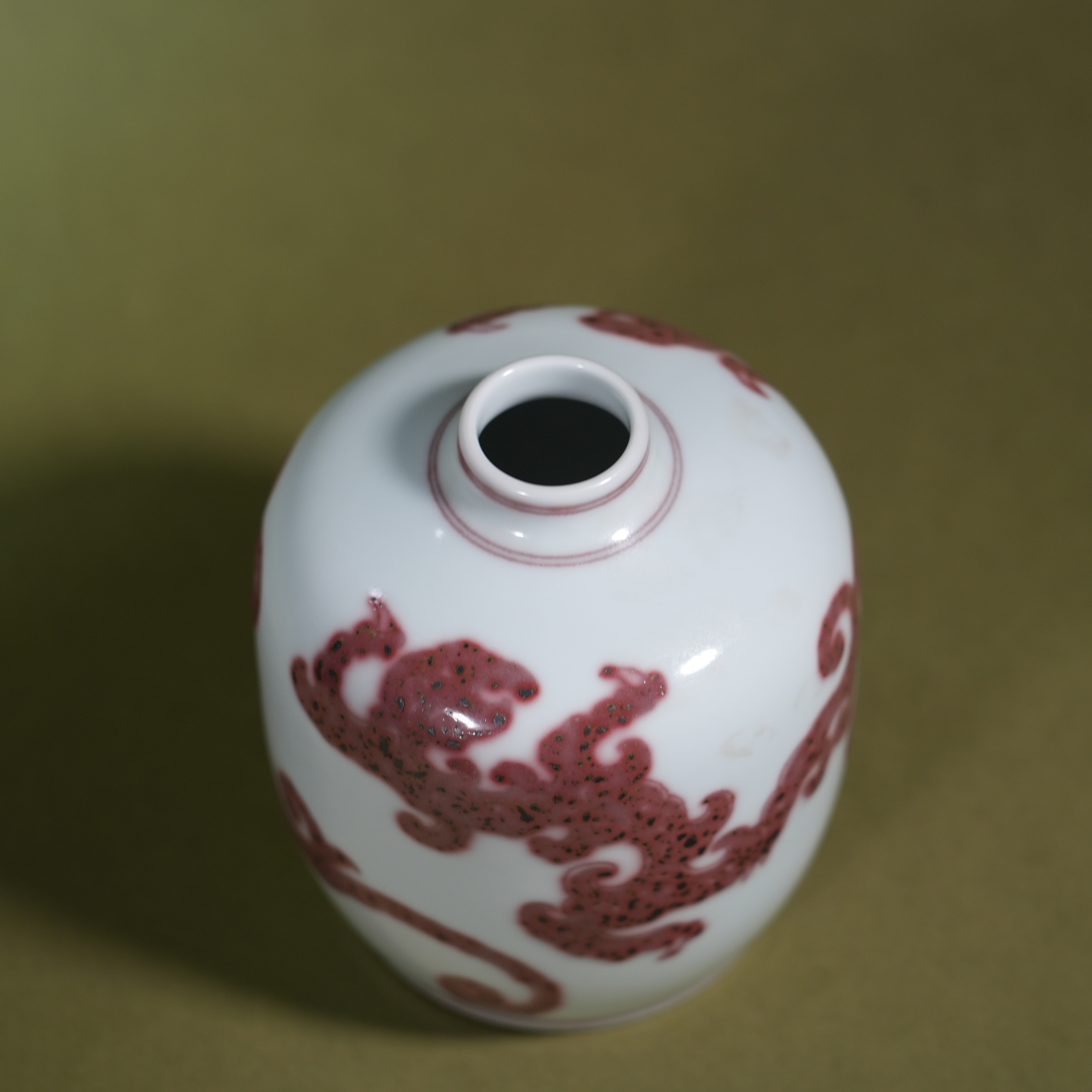Ancient Chinese Underglaze Red Chi Dragon Small Porcelain Vase