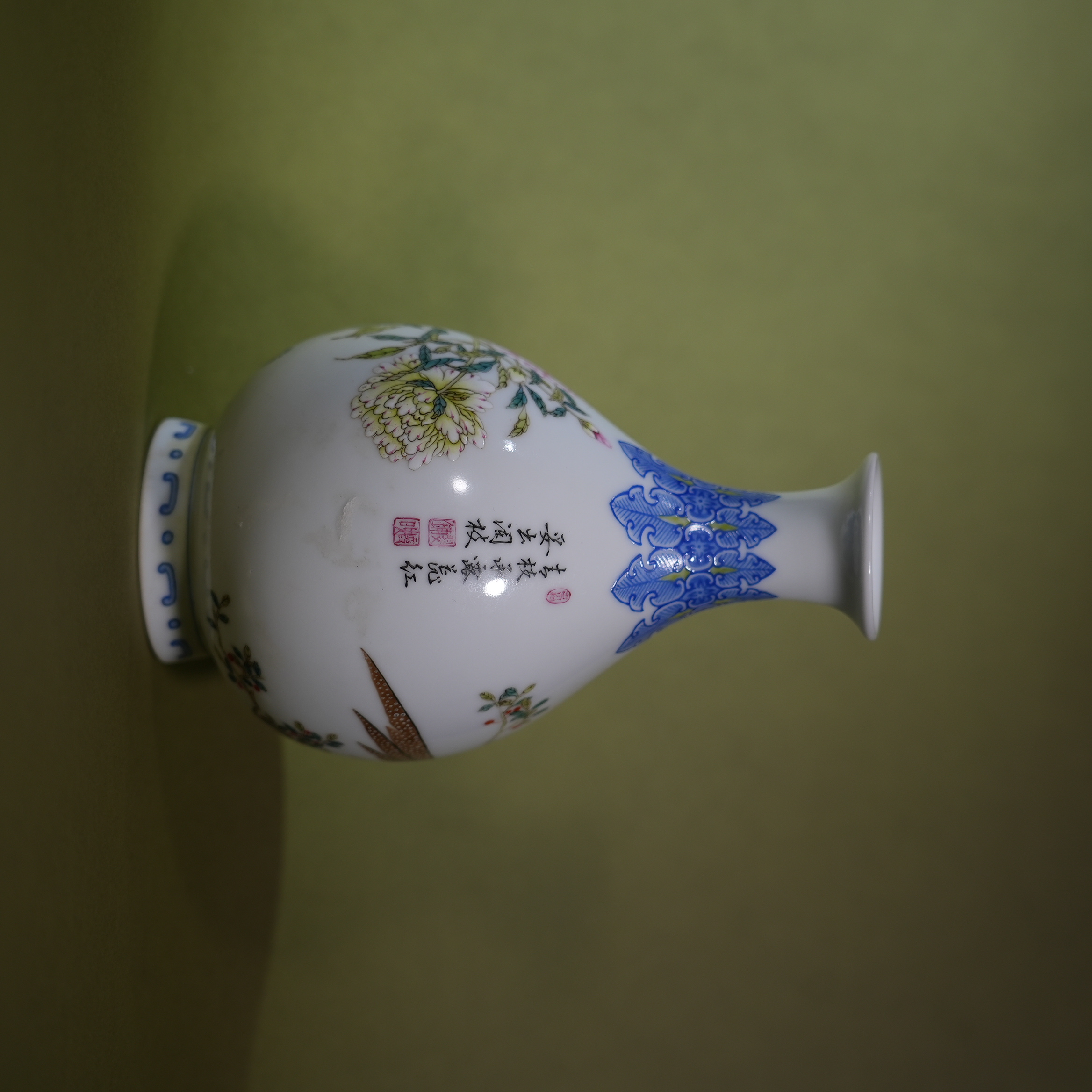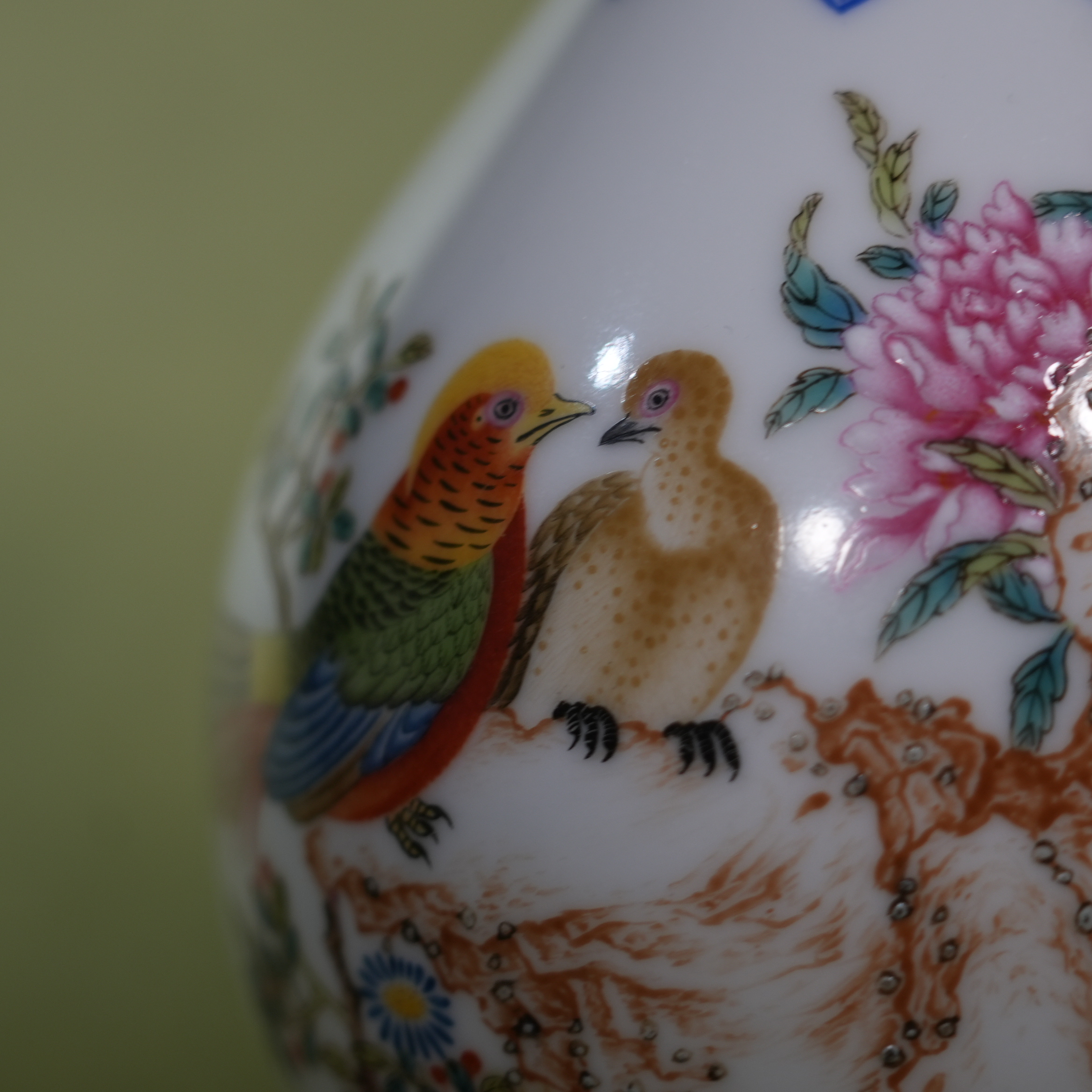 Antique Chinese Qing Dynasty Hand-Painted Famille Rose Golden Pheasant Vase