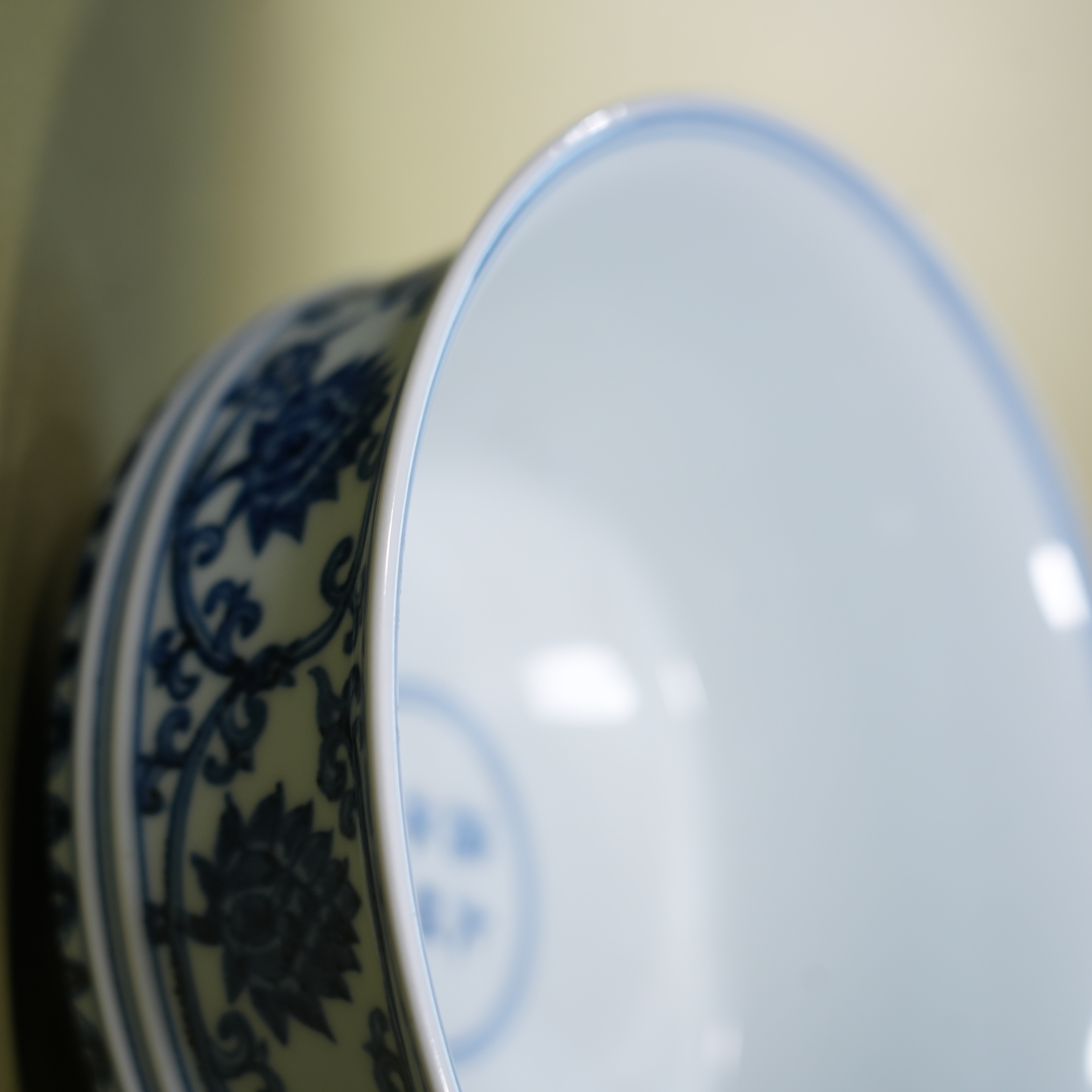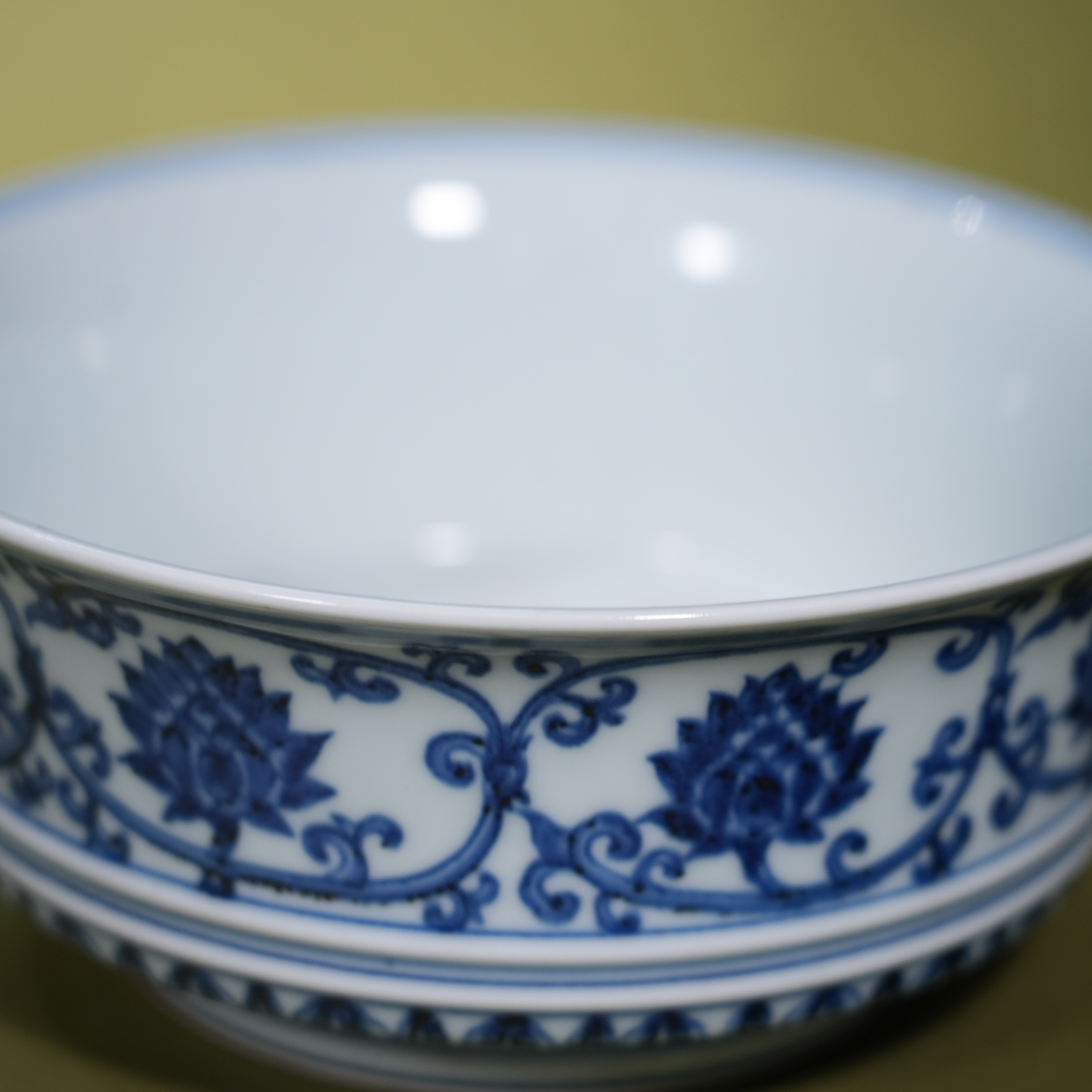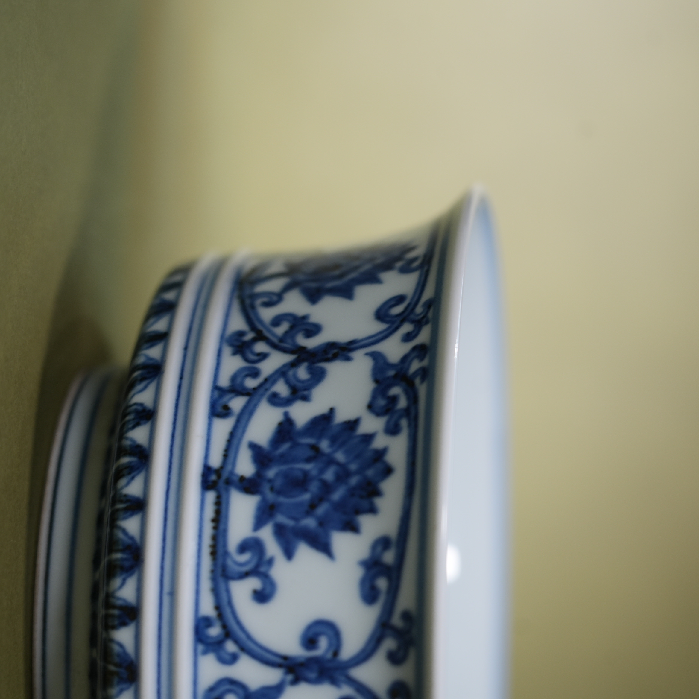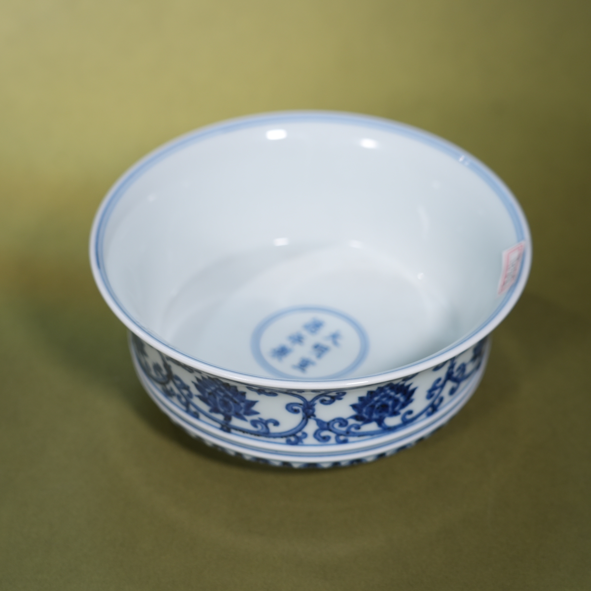 Ancient Chinese Blue and White Lotus Vine Porcelain Washer