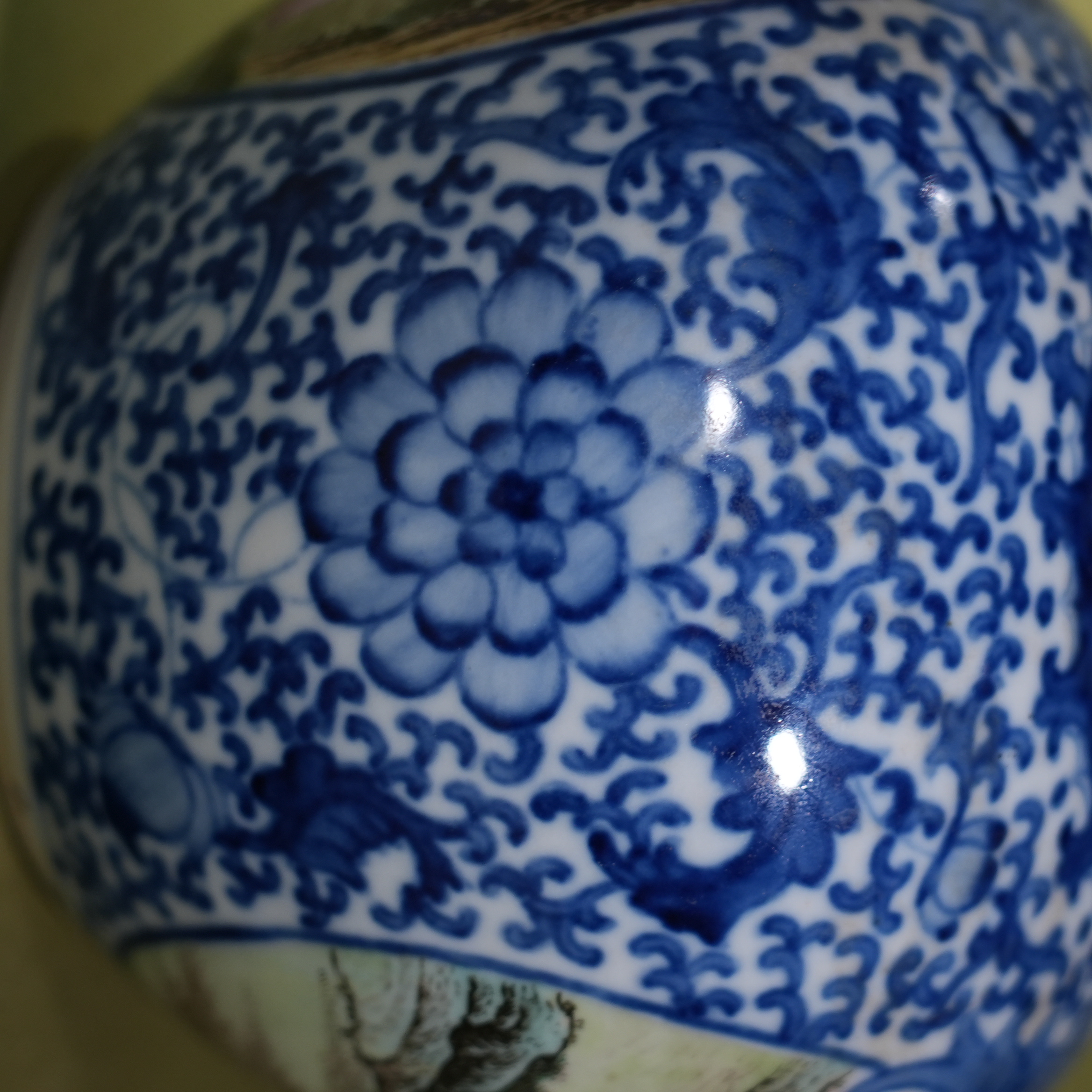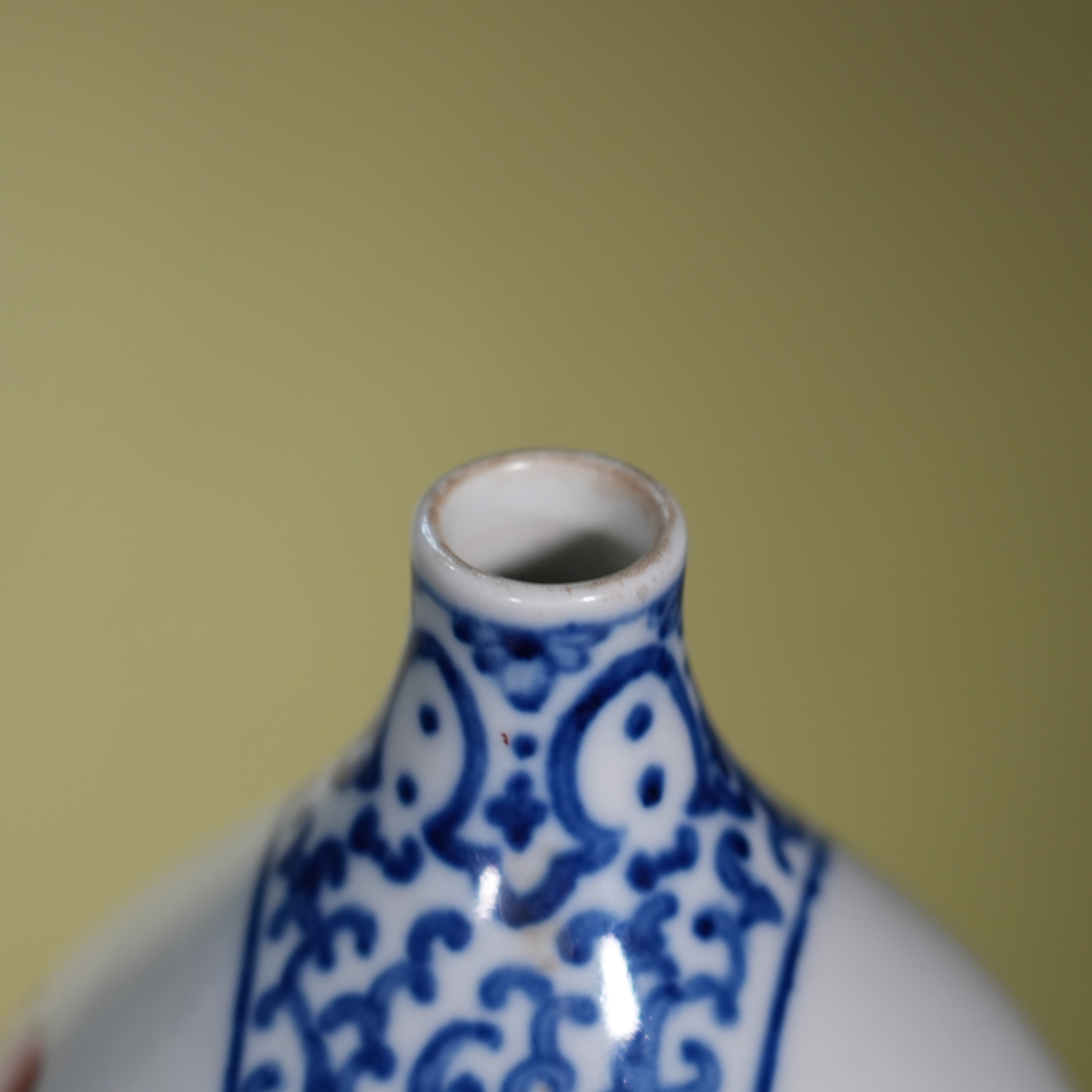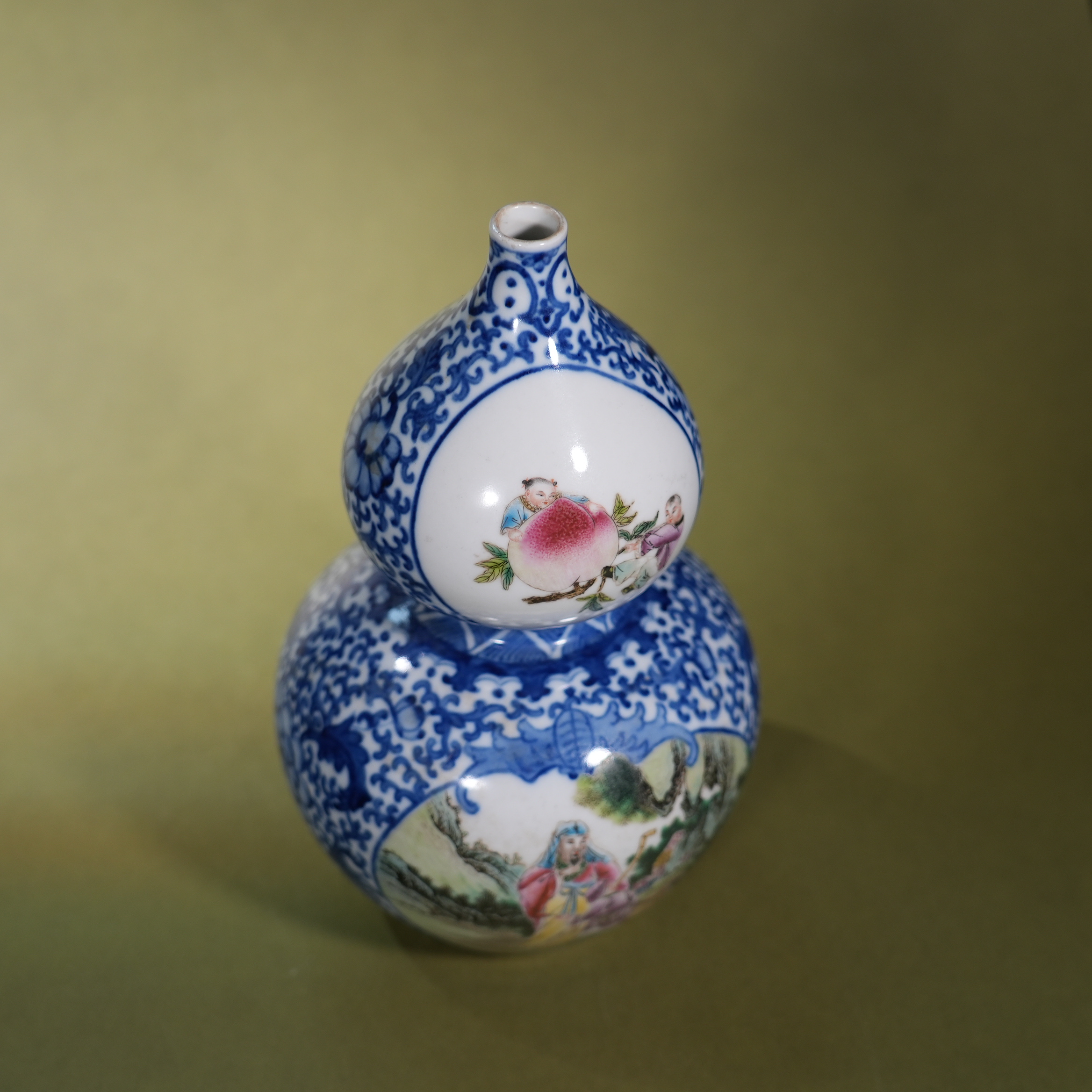 Ancient Chinese Blue and White Famille Rose Figural Gourd Porcelain Vase