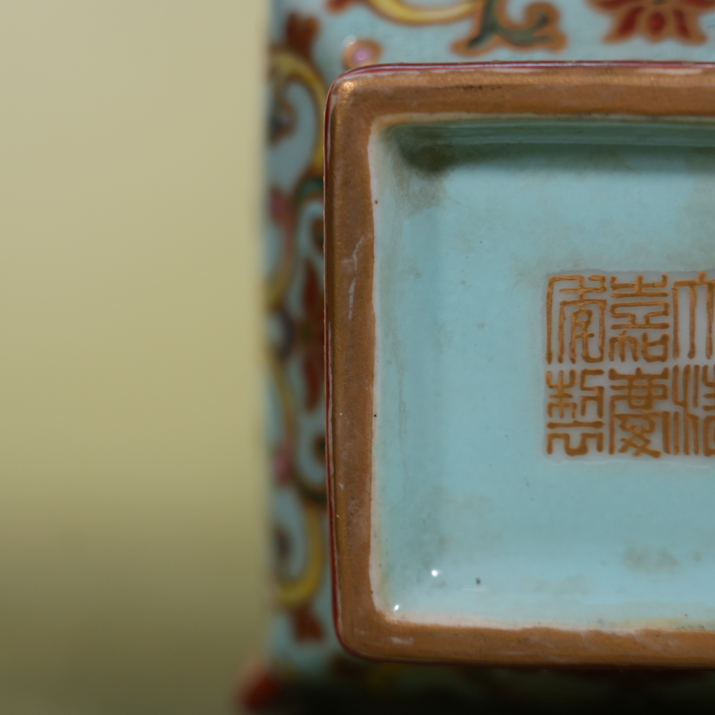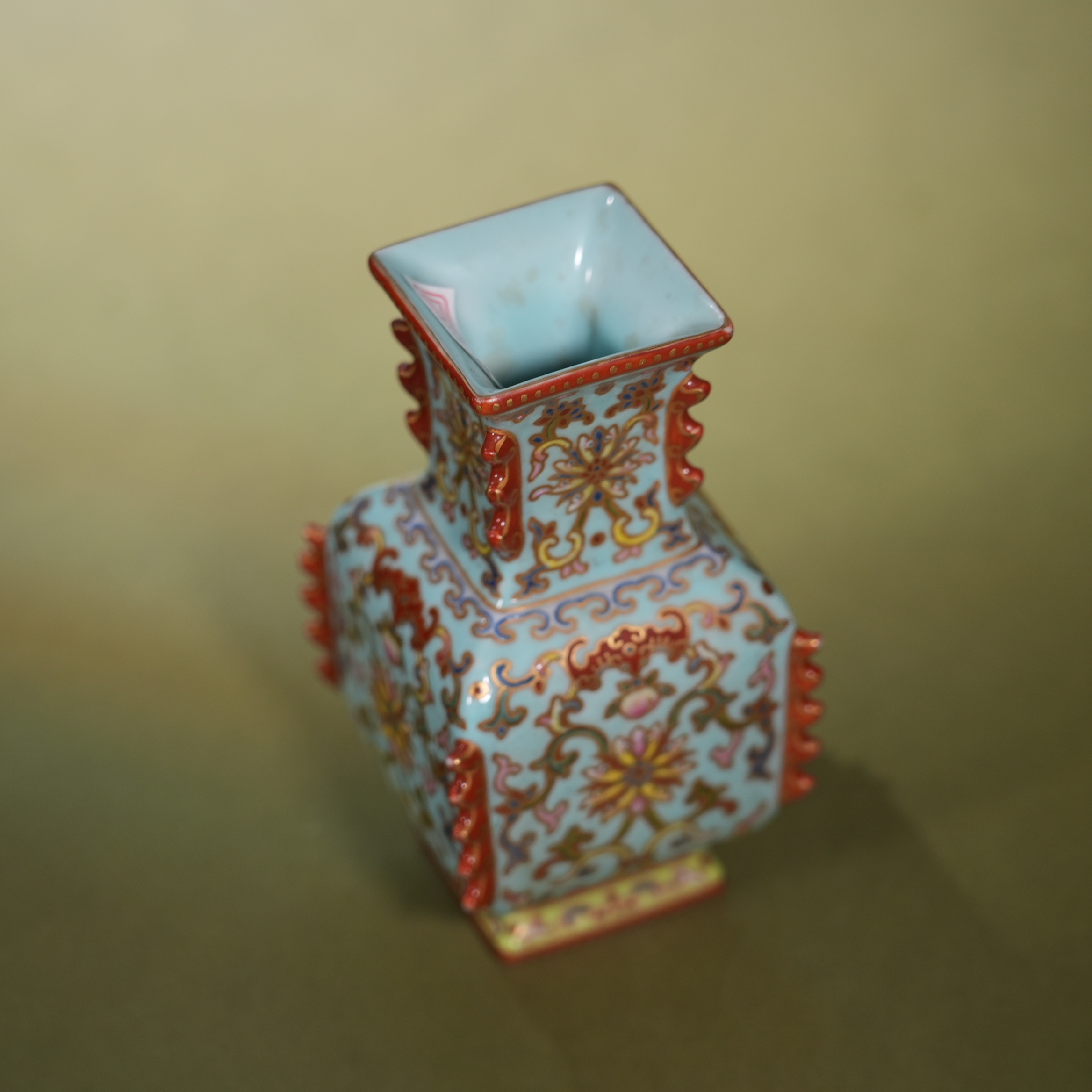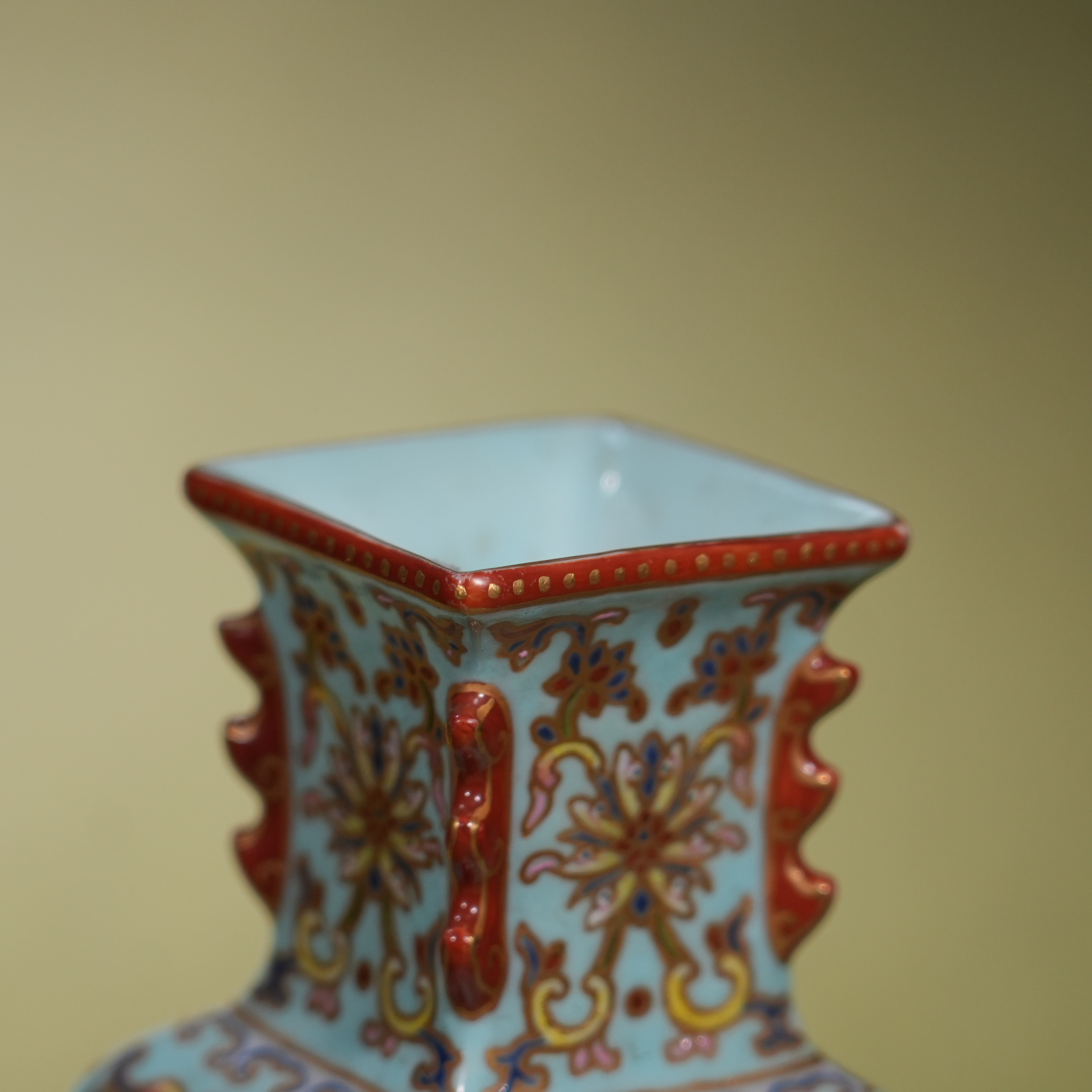 Ancient Chinese Famille Rose Auspicious Floral Square Porcelain Vase