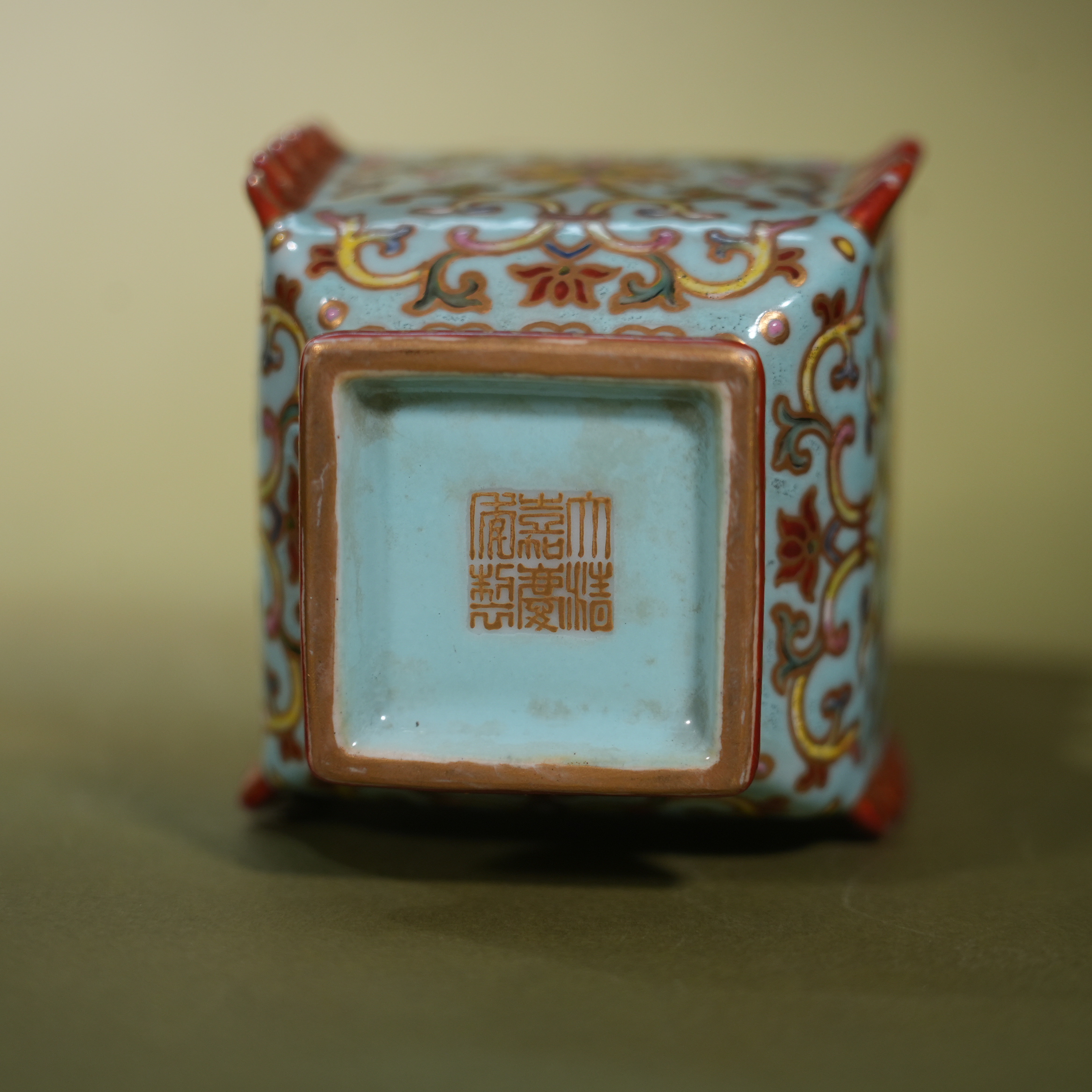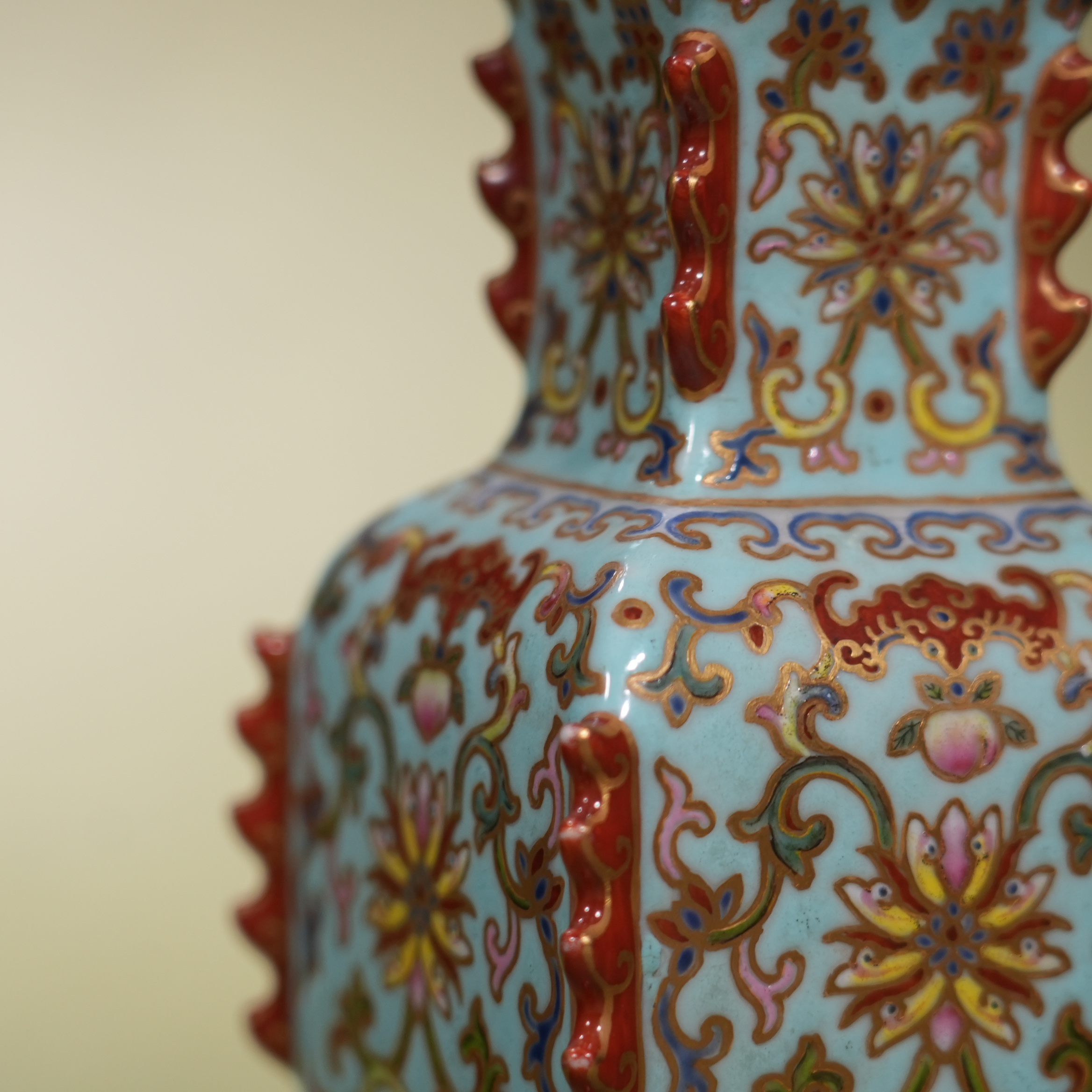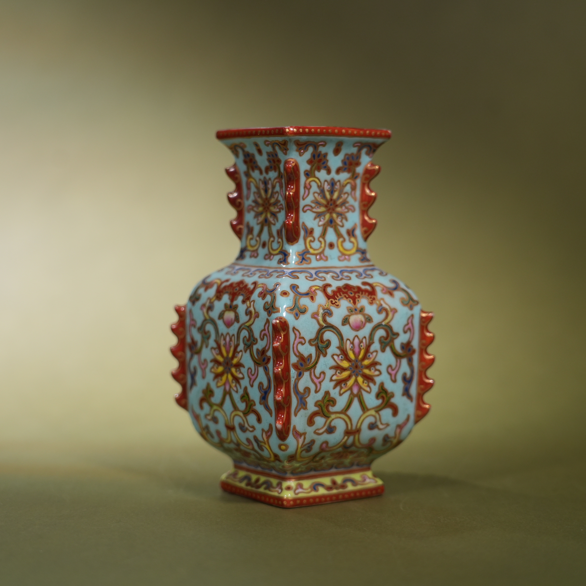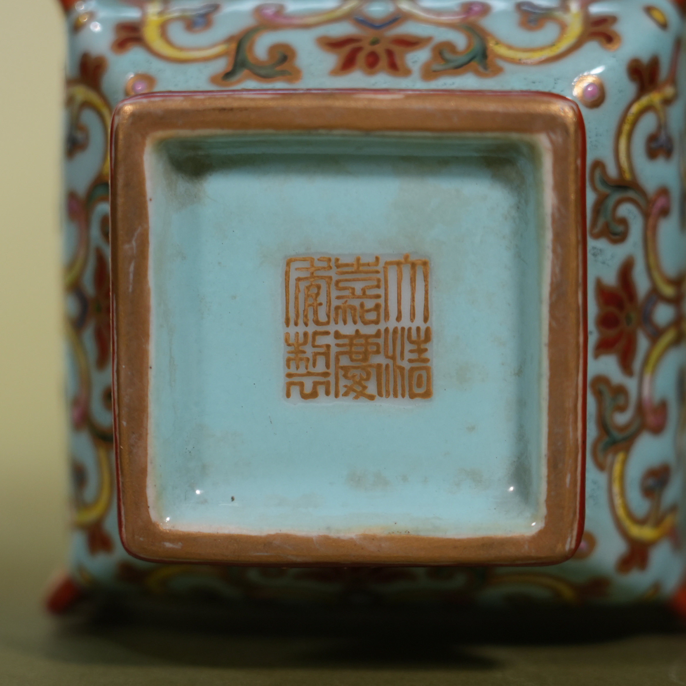 Ancient Chinese Famille Rose Auspicious Floral Square Porcelain Vase