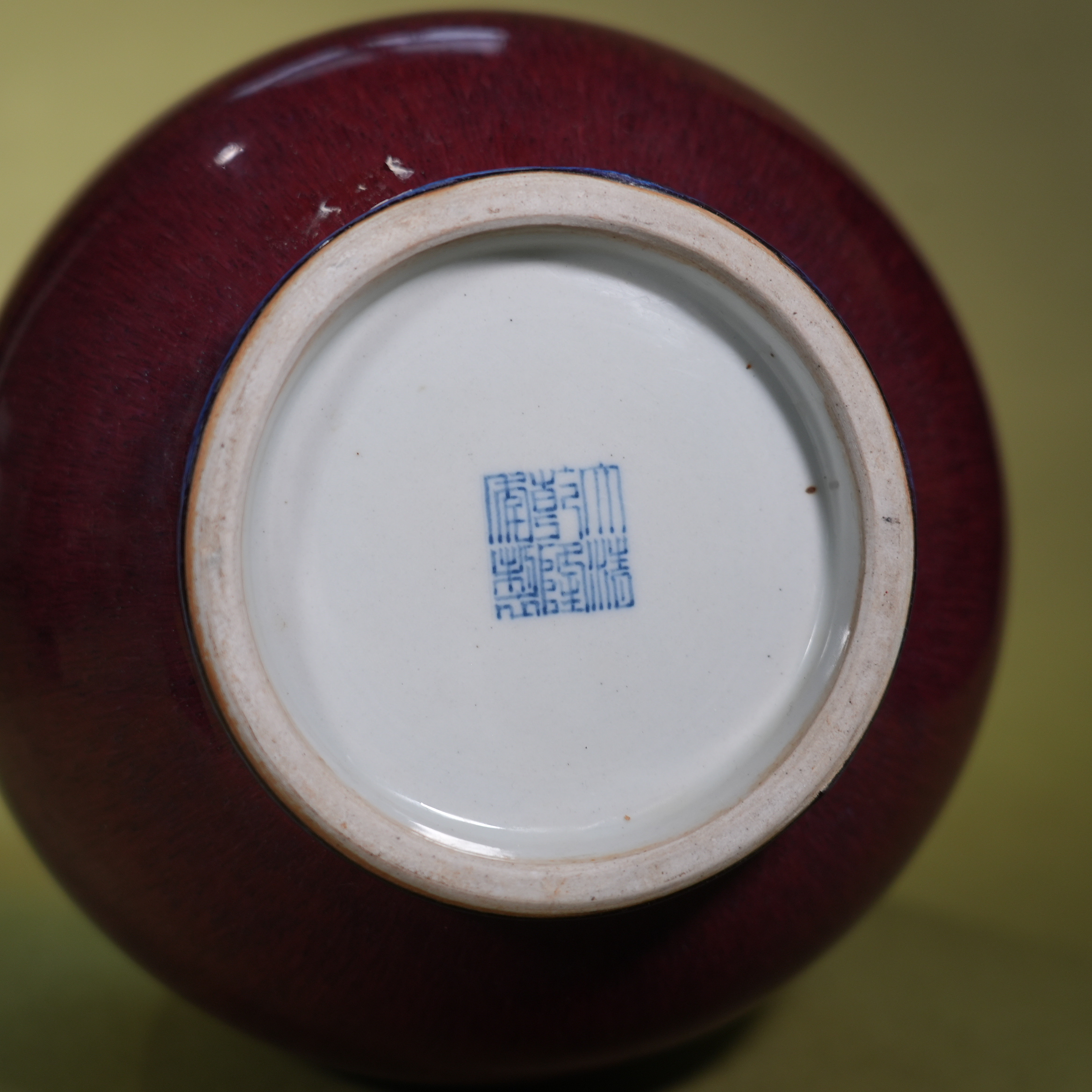 Ancient Chinese Sacrificial Red Glaze Yuhuchun Porcelain Vase