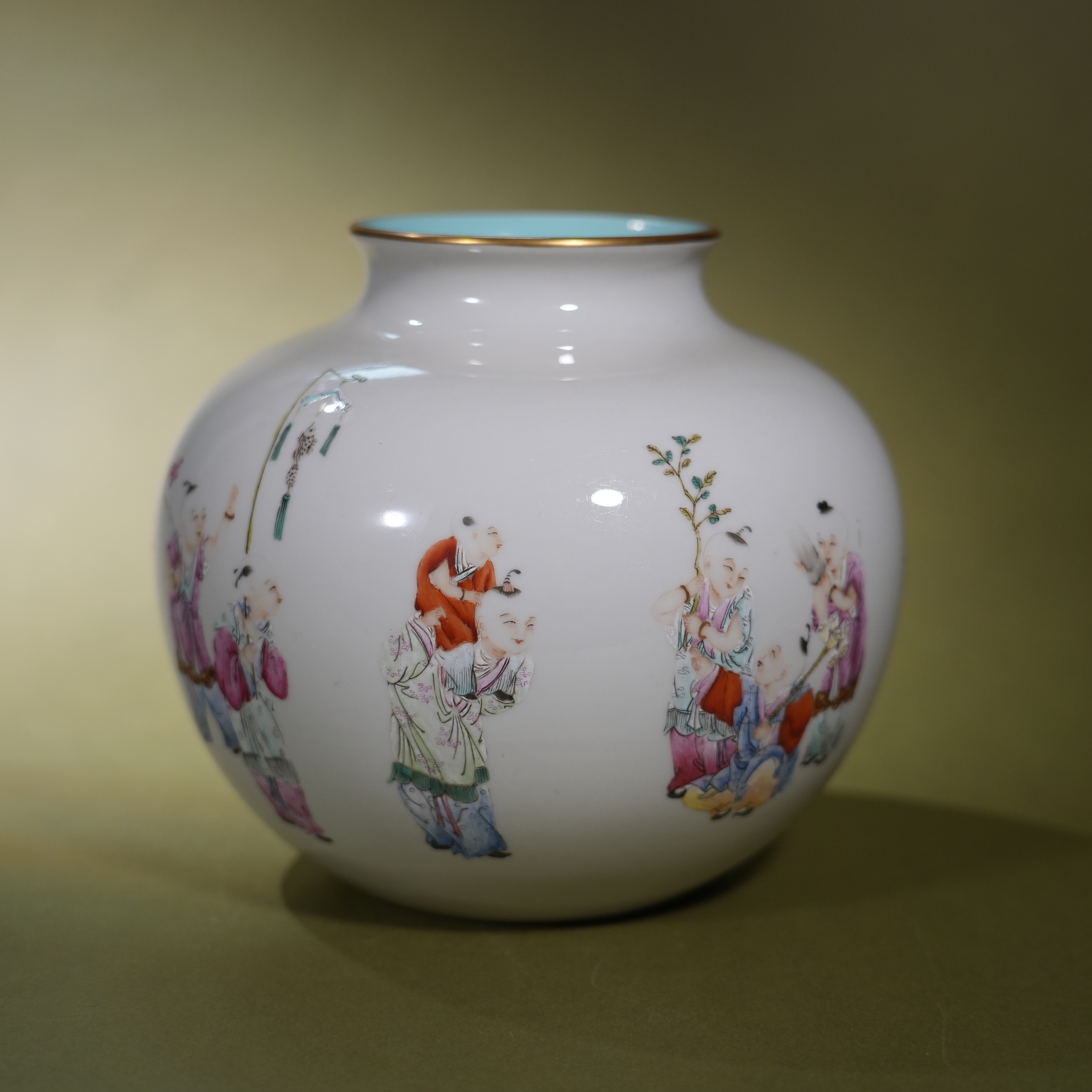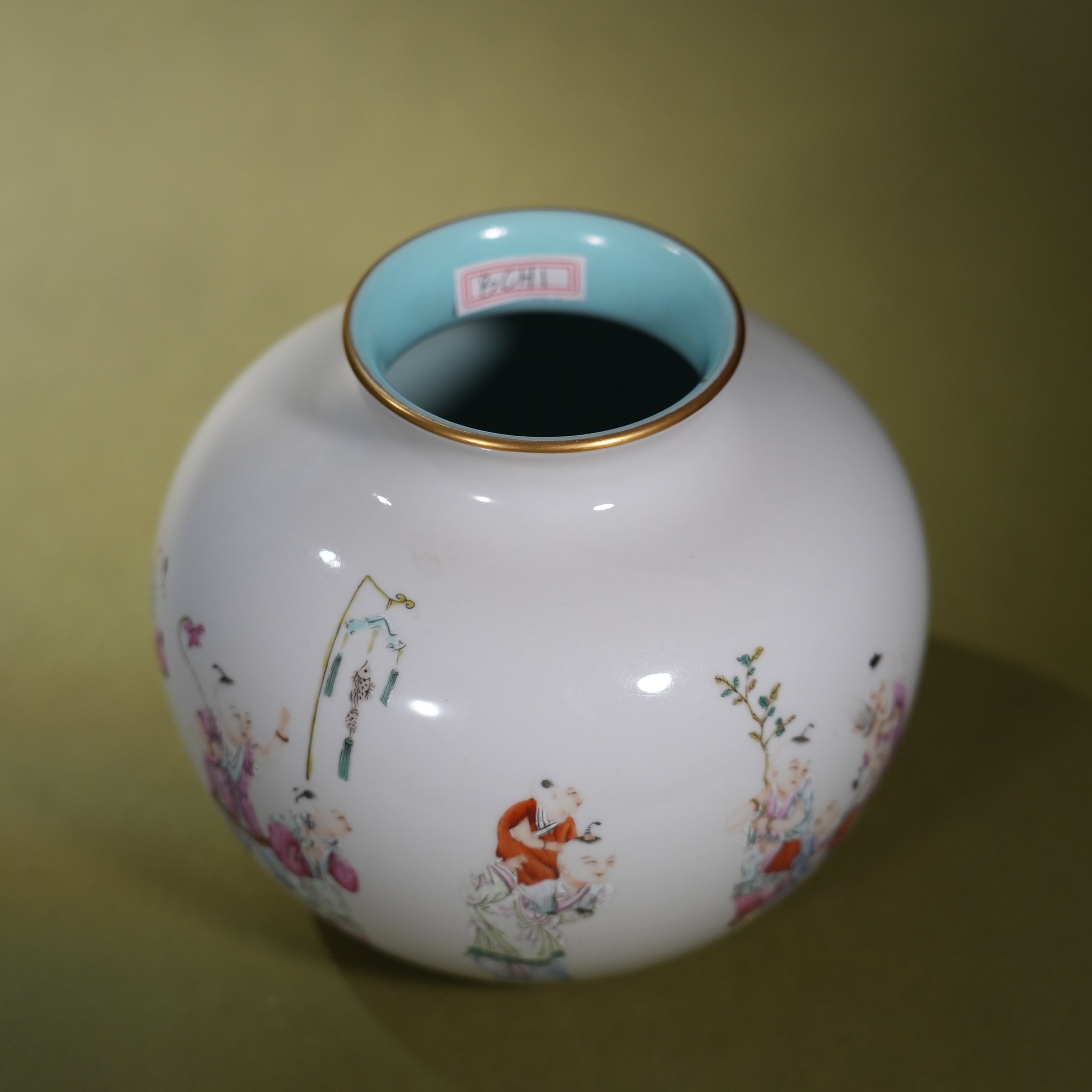 Ancient Chinese Famille Rose Boys at Play Pomegranate Porcelain Vase