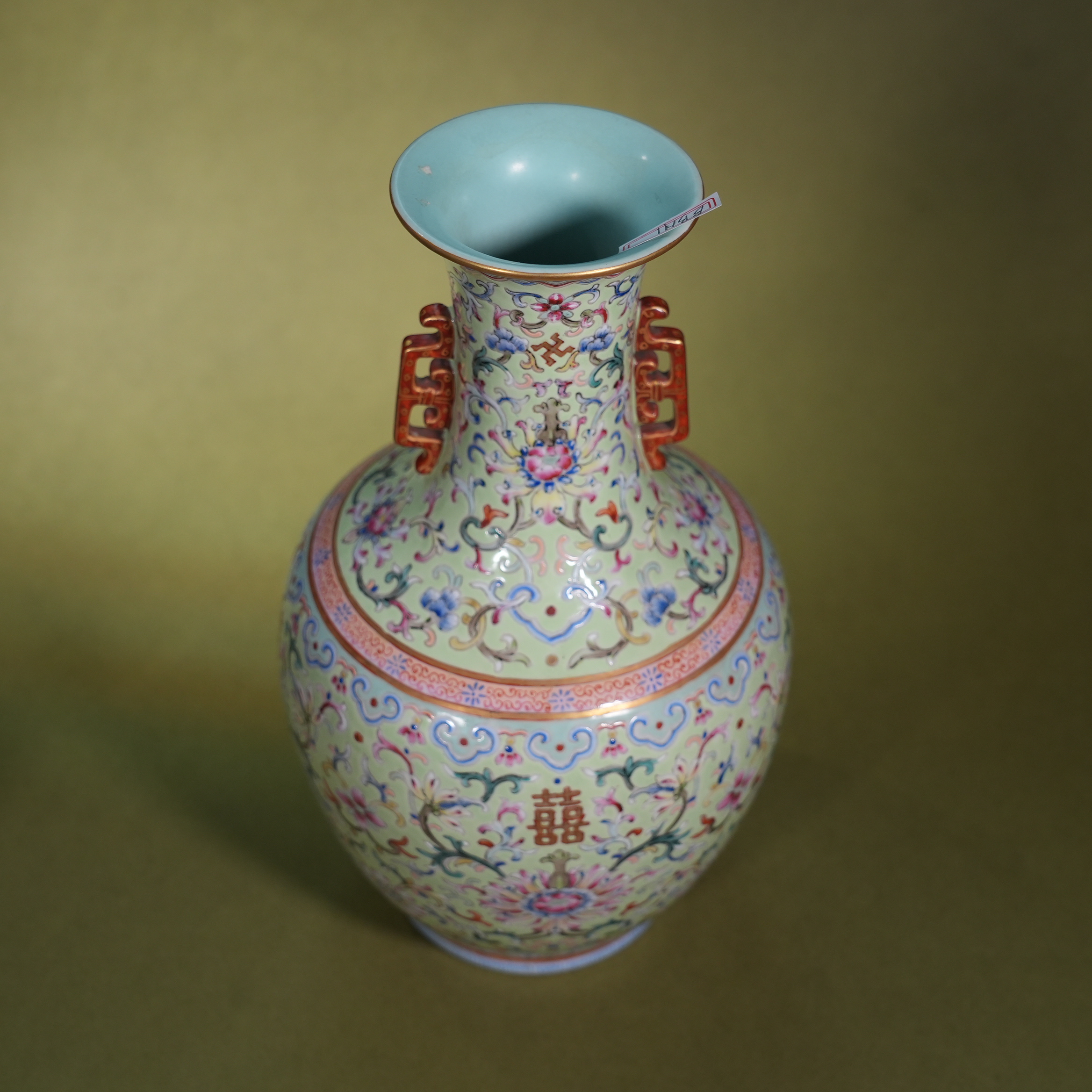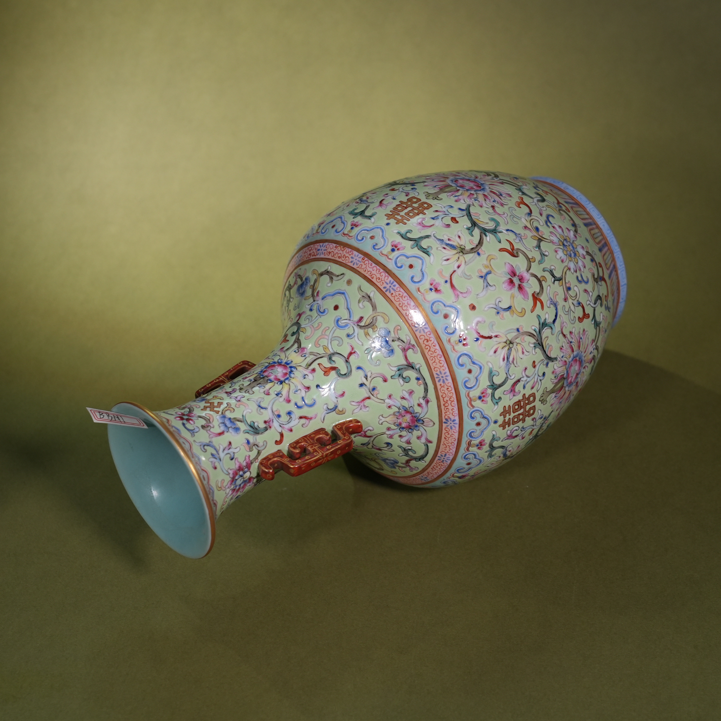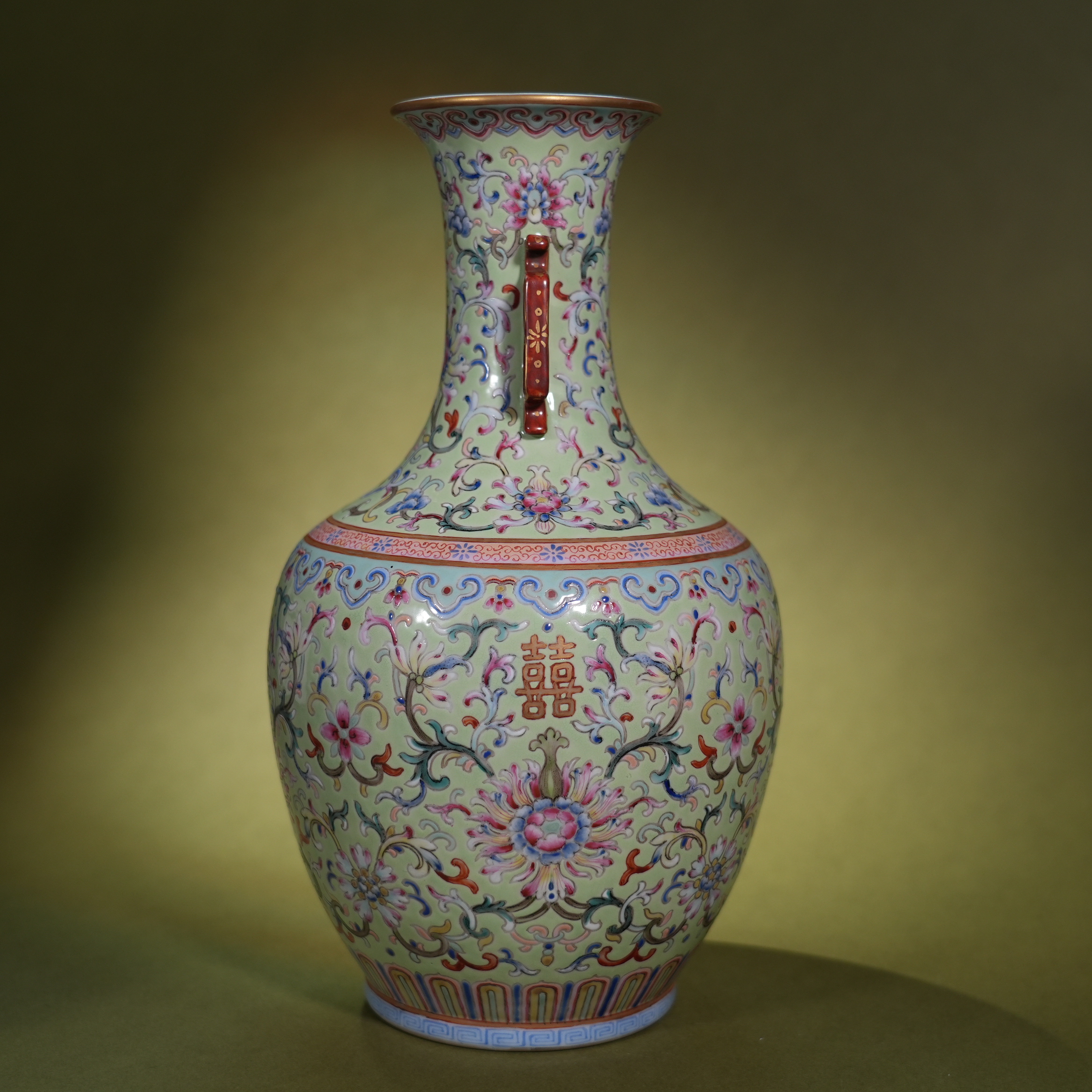 Ancient Chinese Famille Rose Double Happiness Porcelain Vase